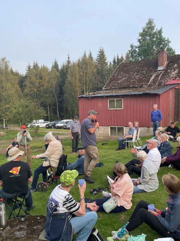 Vi fick en härlig kväll när ca 70 personer träffades på Magnus Hallbergs gård för att bekanta oss med Bälshults by. "Loa Lars-Olof Andersson inledde med att hälsa alla välkomna och berättade om gårdarna som fanns förr i tiden. När vi fortsatte vandringen fick vi höra berättelse och anekdoter om personer som bott i gårdarna förr. Numera ägdes många hus av danskar som bevarat dem i fint skick. Vi avslutade kvällen med att fika på Magnus gård där han berättade om gårdens historia.