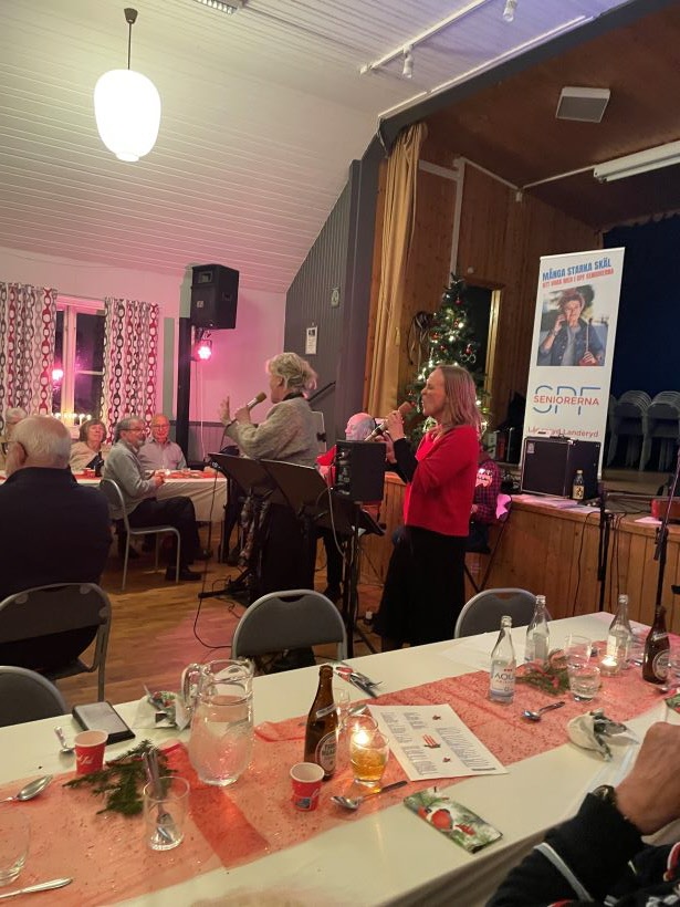 För underhållningen svarade Susanne och Jessica som kompades av Janne och Olle, det bjöds på många välkända och härliga jullåtar där vi oxå hade möjlighet att sjunga med.