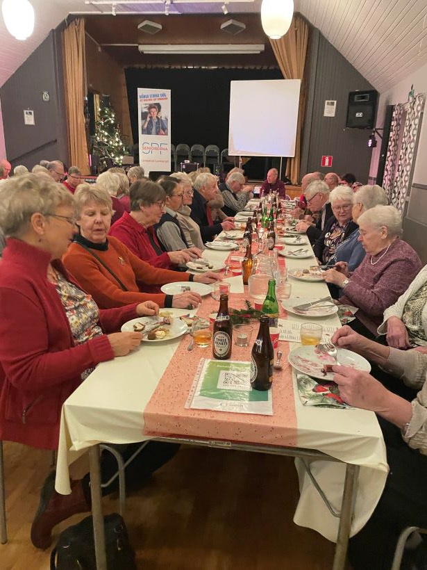I måndags fylldes Nyarps Bygdegård av förväntansfulla seniorer som såg framemot att smaka på årets julbord som traditionsenligt lagats av ett gäng matintresserade killar under ledning av Marita Kjelllin.