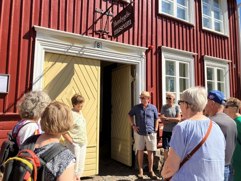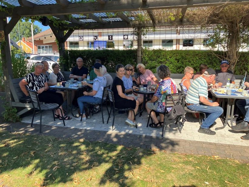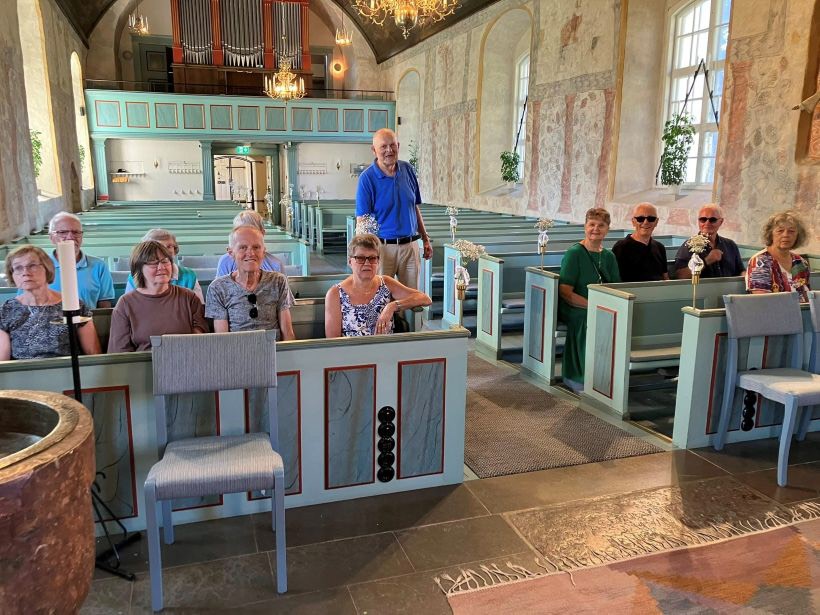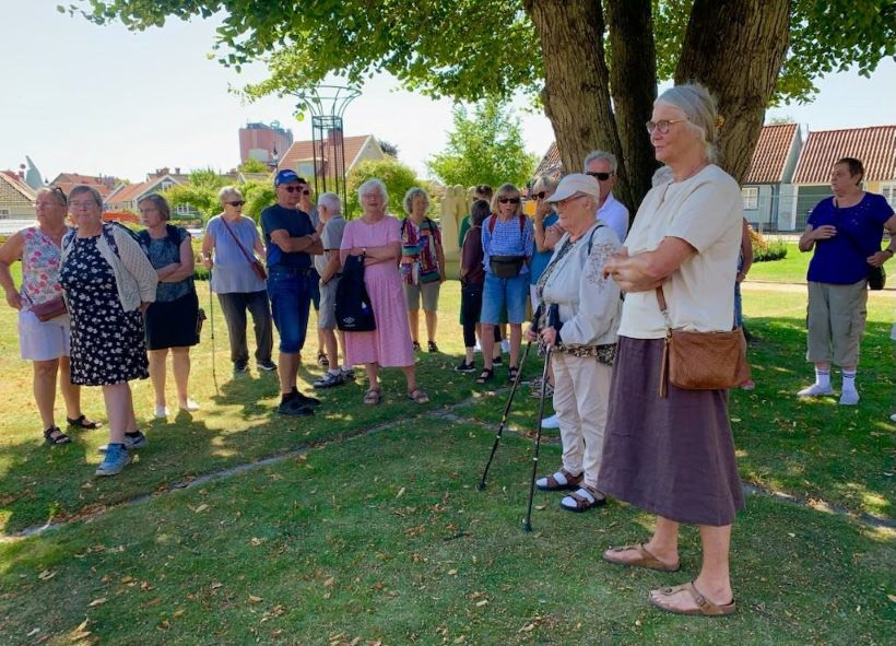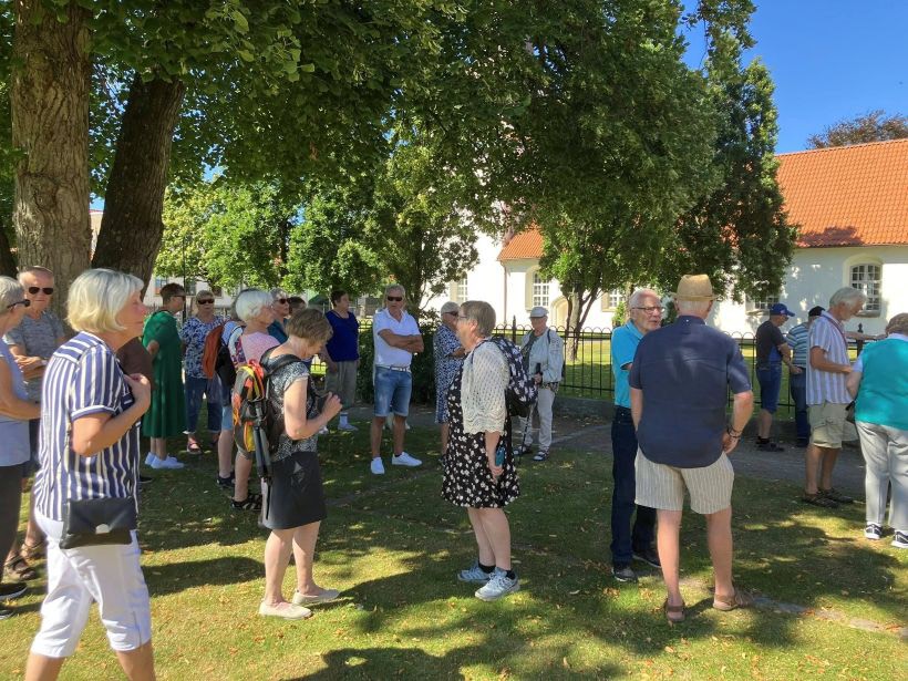 Vi var 35 förväntansfulla SPF:are som möttes utanför S:t Laurentikyrkan för att få höra om Falkenbergs gamla stad. Siv Qvarfordh berättade inlevelsefullt om alla föremål i hembygdsmuseet och Anders Brogren var mycket insatt i historien om kyrkan. Solen värmde och någon blev lite trött men det avhjälptes med gofika, medhavd eller på konditori.
