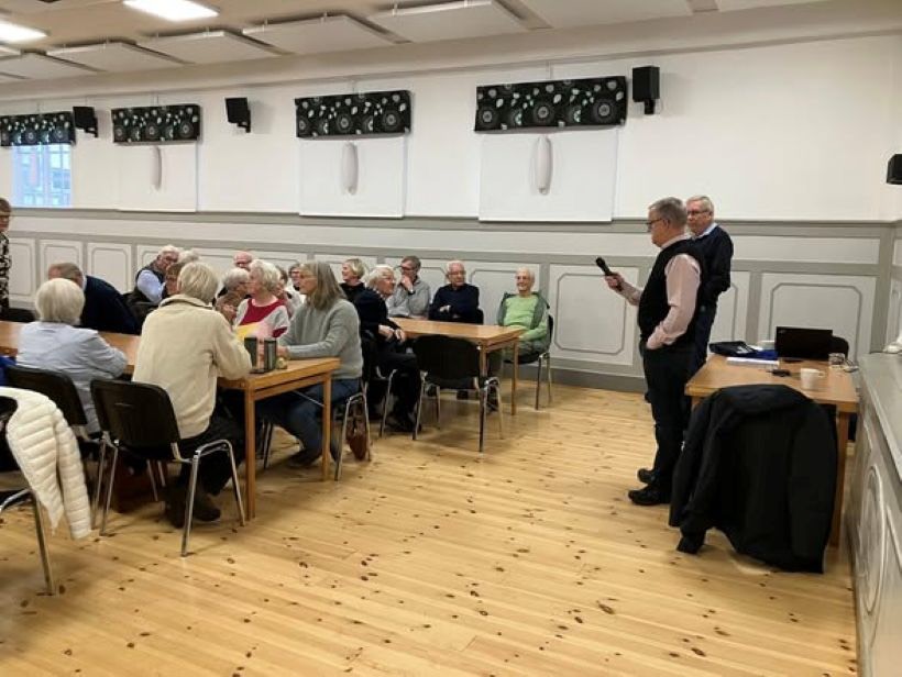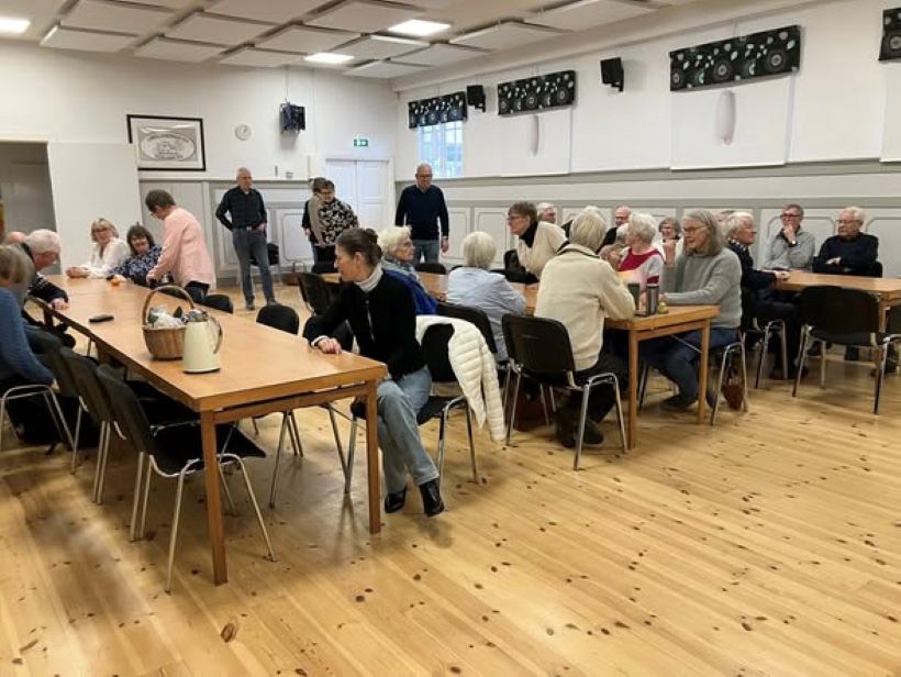 36 leende och lite smågnolande SPF:are lämnade Torups bygdegård efter en härlig musikeftermiddag. Sven Comstad ordförande för Alla Hjärtans Vänner i Halmstad bjöd på bröderna Gustav och Viktor Norens musikskatt och berättelser om deras liv.