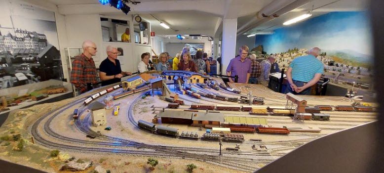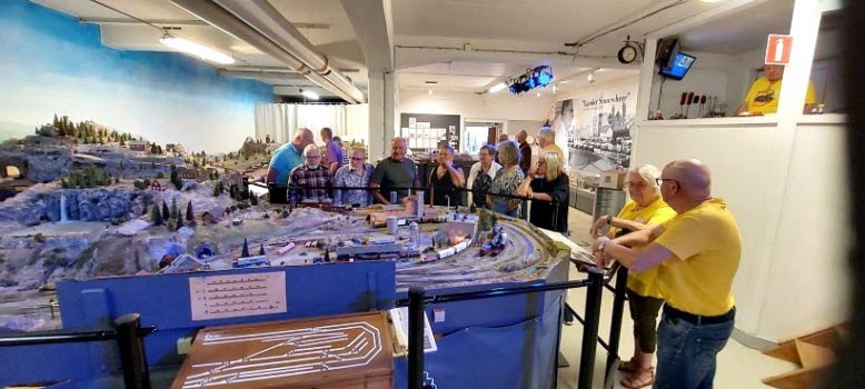 Mycket var det att ta in för oss 30 deltagare då vi trädde in i denna minivärld. Fullt med modelljärnvägar - Lilla Småland med historiska modellbyggen. Allt startade i källaren hos Dr Schultze då han byggde sin fantasijärnvägsbana på 50/60-talet.