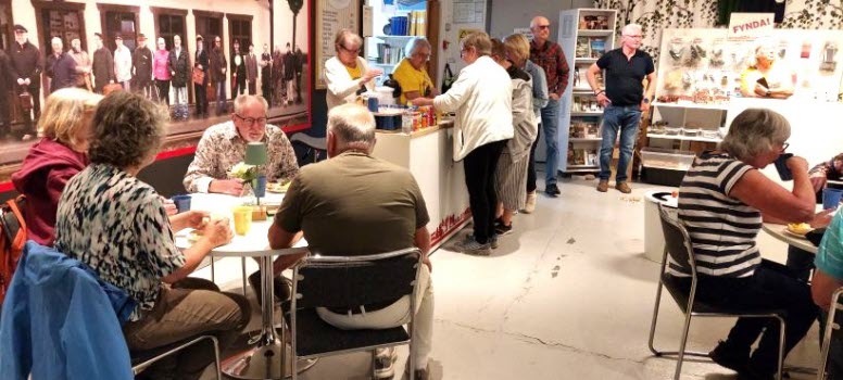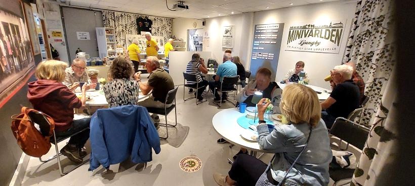 Numera finns det så mycket mer än järnvägar att se. Historiska slagfält med tennsoldater, bilnostalgi, dockskåp, bio m.m och naturligtvis café så vi fick vår sedvanliga fika.