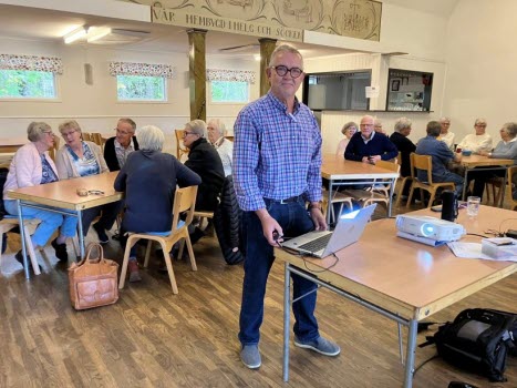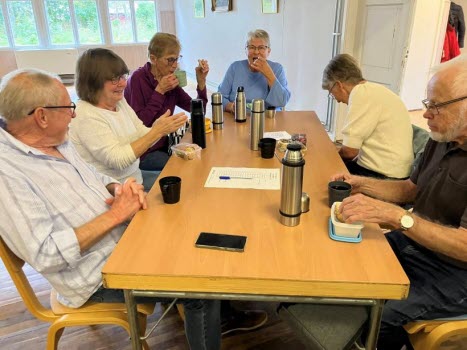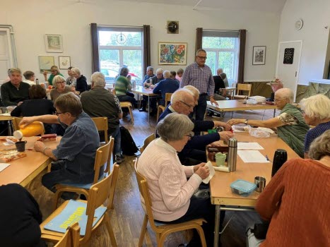 Vi var 57 st som kom till Drängsereds bygdegård för att gnugga geniknölarna i Lars-Eriks musikquiz. Efter lite teknikstrul rullade frågorna igång. 2 lag (bara damer) fick 18 av 20 möjliga poäng, skiljefrågan fick avgöra. En liten blomma till vår duktiga ordförande med anledning av hans 70-årsdag hann vi också med innan kaffet kom fram.
