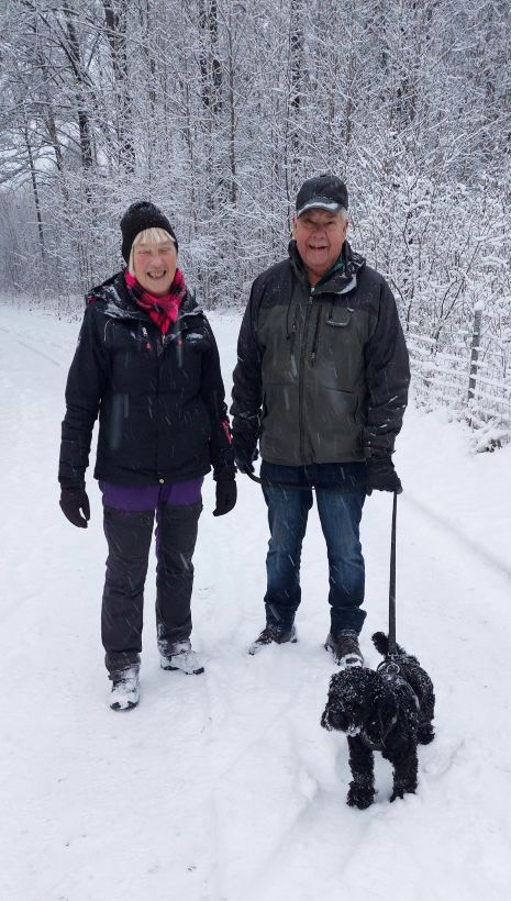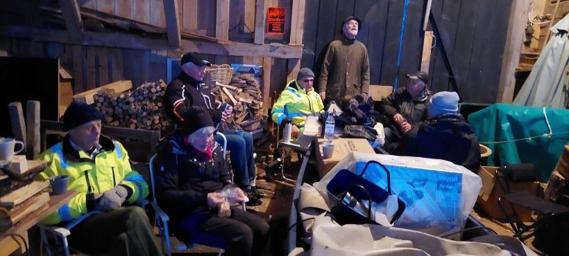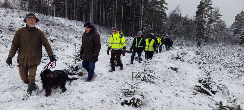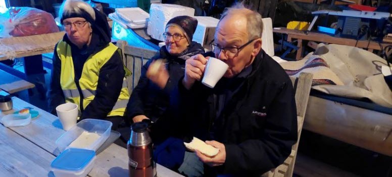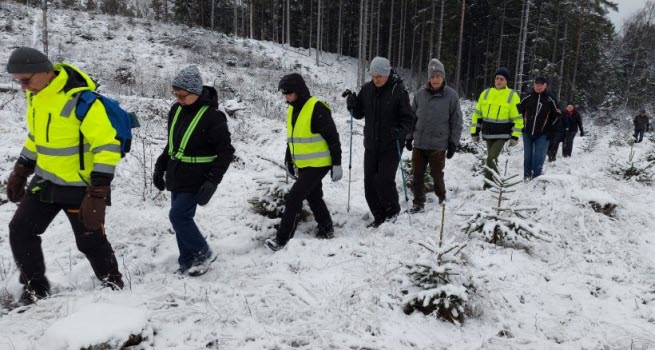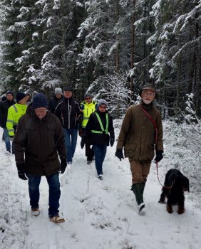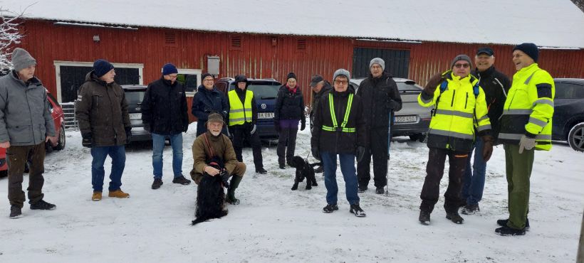 Det är tåliga medlemmar vi har i vår förening. 14 stycken mötte upp idag i Eldshult hos Lars och Conny, trots snöiga och hala vägbanor. Från Elshult promenerade vi förbi Sofieslätt och sedan en runda in i skogen. Efter promenaden trängde vi ihop oss i ladan en stund och njöt av vår fika.
