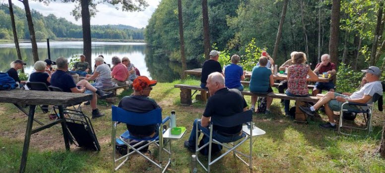 Fröslida visar upp sig från en av sina bästa sidor denna sensommardag. Underbart vackert väder fick vi 22 seniorer på vår promenad som gick runt Fröslidas egendom. Efter promenaden fick vi som belöning en skön fikastund vid grillplatsen på udden mellan broarna.