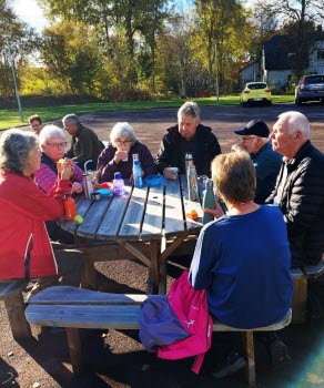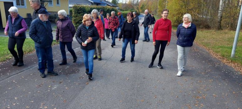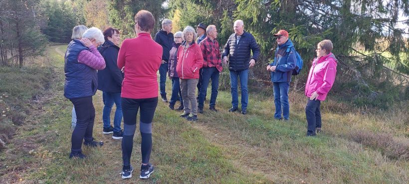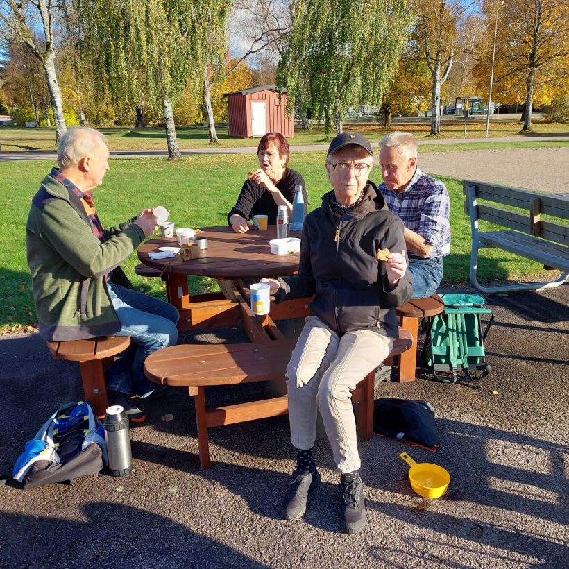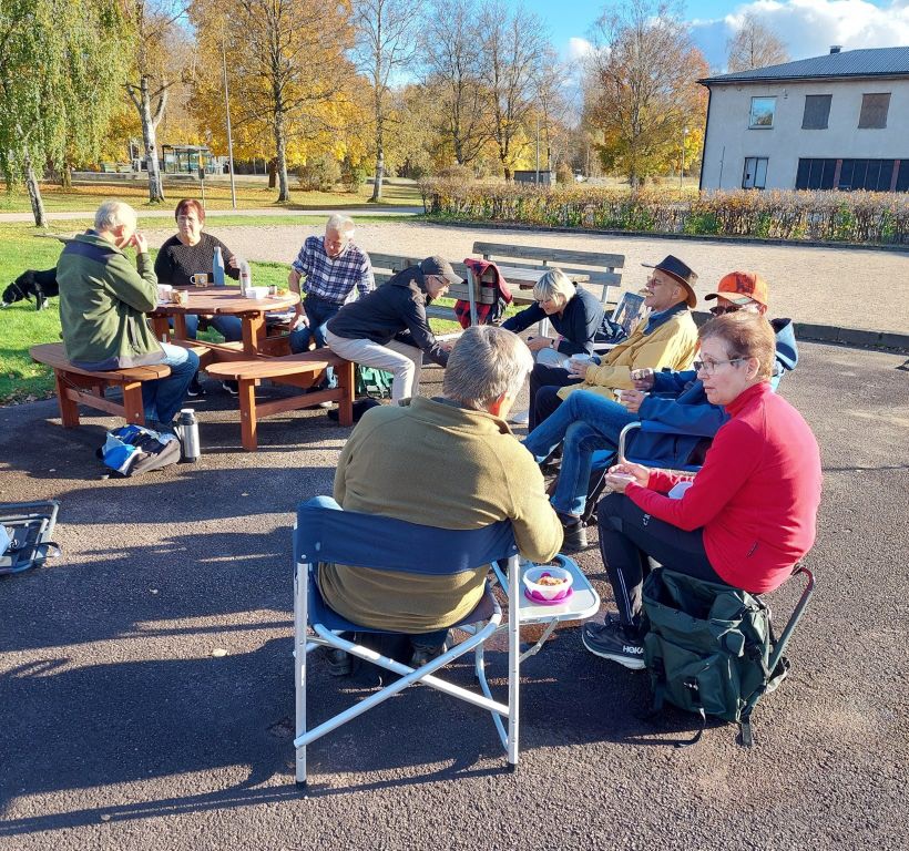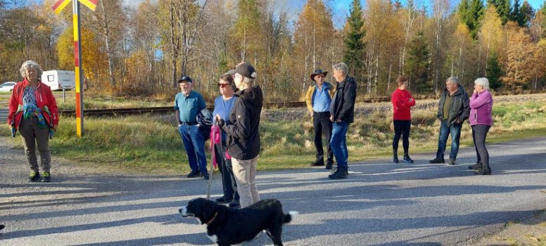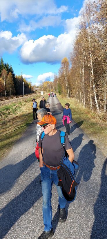 En vacker höstdag i Kinnared. Vi blev 18 seniorer som fick njuta av denna dag. Promenaden gick bitvis på en skön skogsstig för att sedan följa utmed järnvägsspåret. Vi fick lära oss att Åmot var där Västerån och Österån möttes för att sedan mynna ut i Nissan. Och visst smakar fikan gott då solen fortfarande lyser och ger ett litet uns av värme.