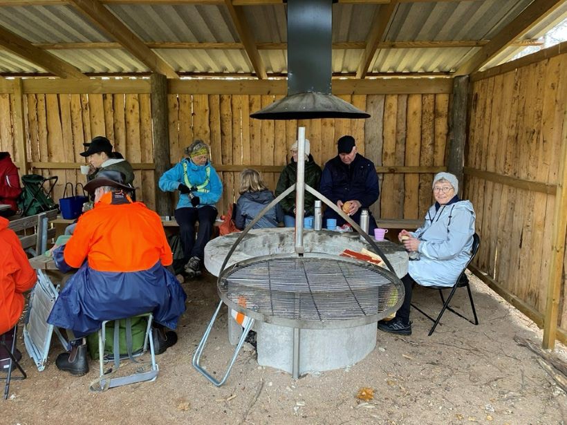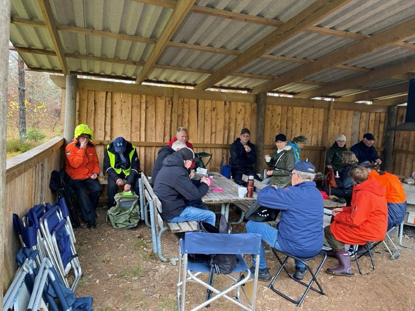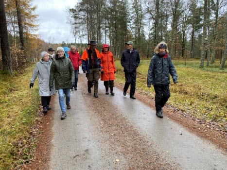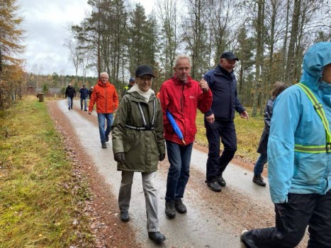 Vi var 19 st SPF are som trotsade regnet o promenerade ”Minkarundan” i Torup , drygt 3 km, sedan var det skönt att sitta under tak i vindskyddet o fika.