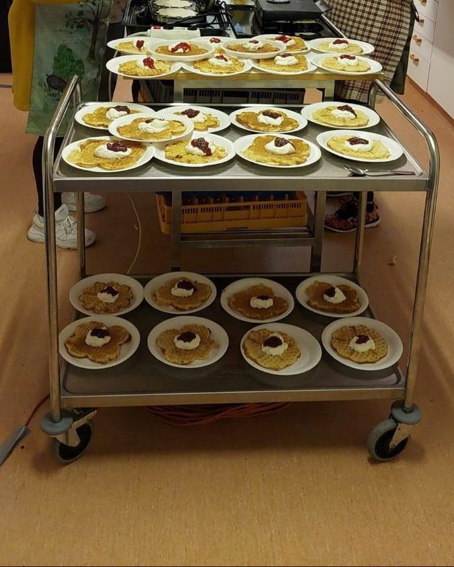 dag var det dags för SPF Senìorerna Drängsereds egen Våffeldag. Inbjudna var de medlemmar som är födda 44 eller tidigare med sina respektive. Inbjudna var dessutom våra fina byombud, så tillsammans blev vi 49 stycken. Lars-Erik hälsade alla välkomna och Gudrun visade bilder från vårt bildarkiv från det gångna året. Ett litet lotteri fick avsluta denna trevliga eftermiddag och vi säger tack för de goda våfflorna!