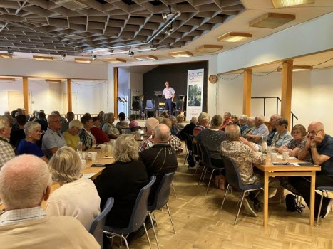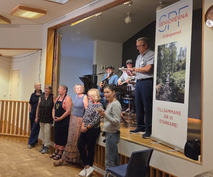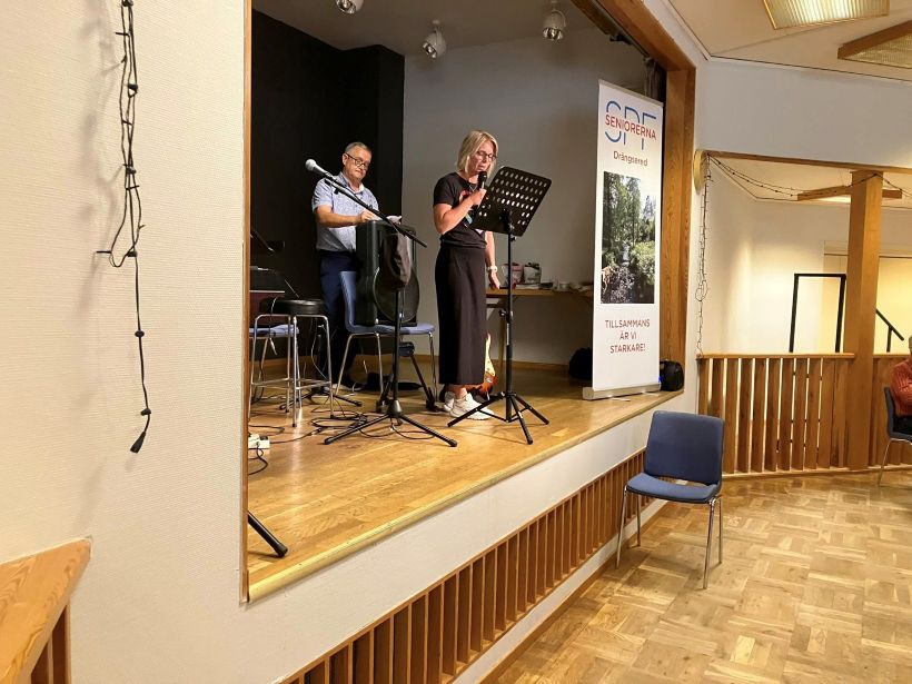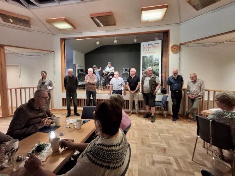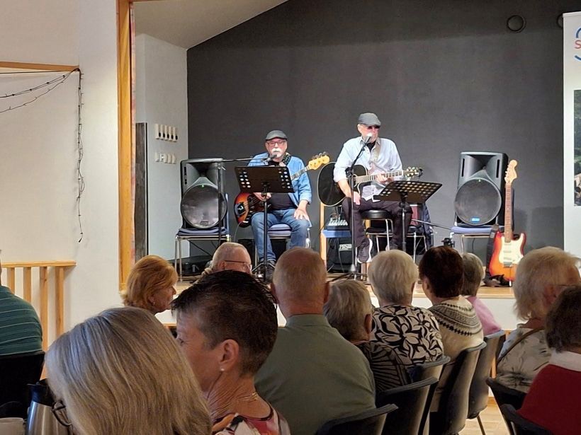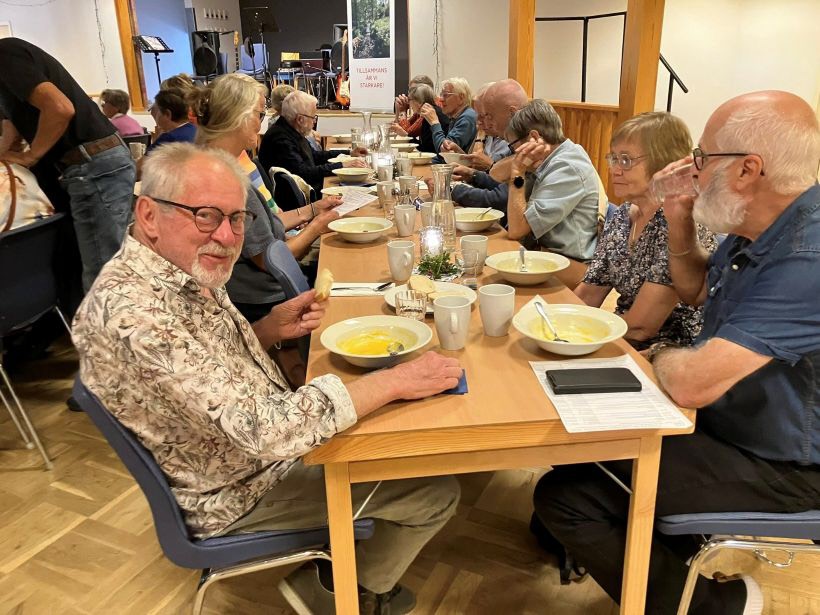 Idag kom 118 pensionärer till Brännöparken för att höra Lars-Erik presentera höstens program. Caroline från vuxenskolan berättade om studiecirklar som kan vara intressanta. Morotssoppa, liten smörgås, kaffe och kaka smakade gott, på scen hade vi Keps, två herrar som spelade och sjöng, mycket bra!