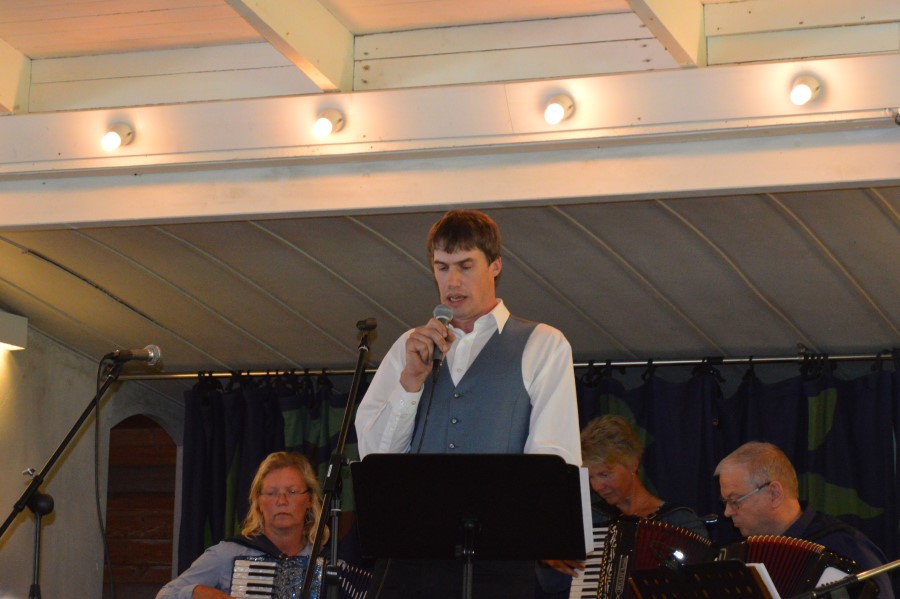 Mårdaklevs spelmanslag underhåller.