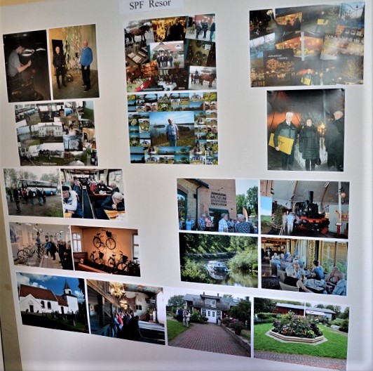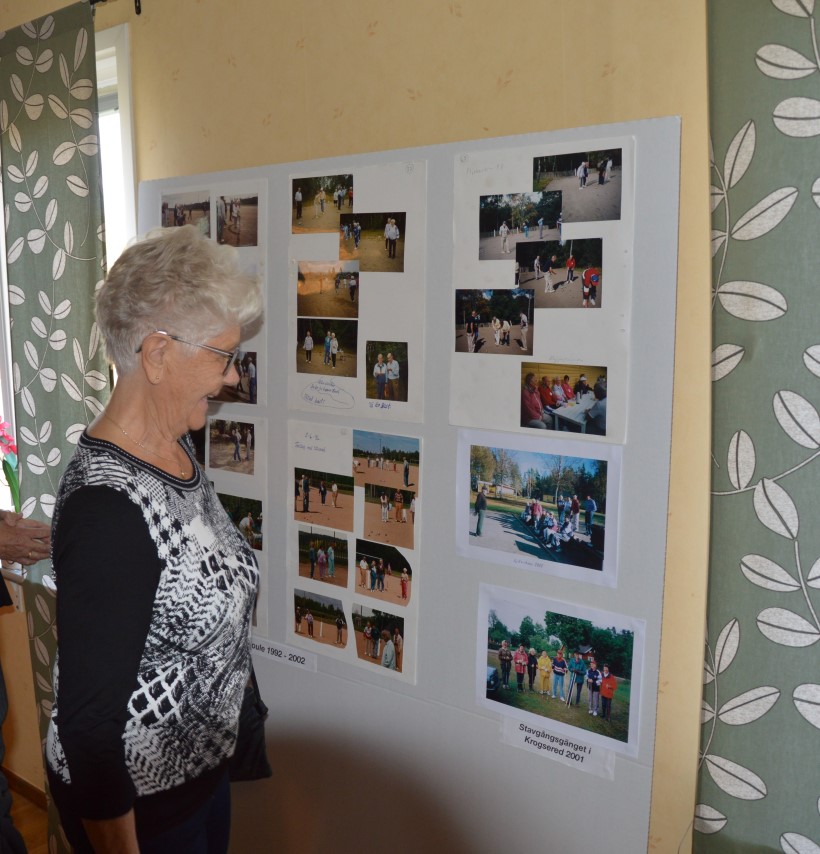 Boel berättade att föreningen satt ihop bilder från förr i en utställning som visas på skärmar i det lilla rummet i bygdegården och uppmanade alla att gå runt och titta