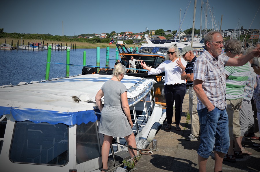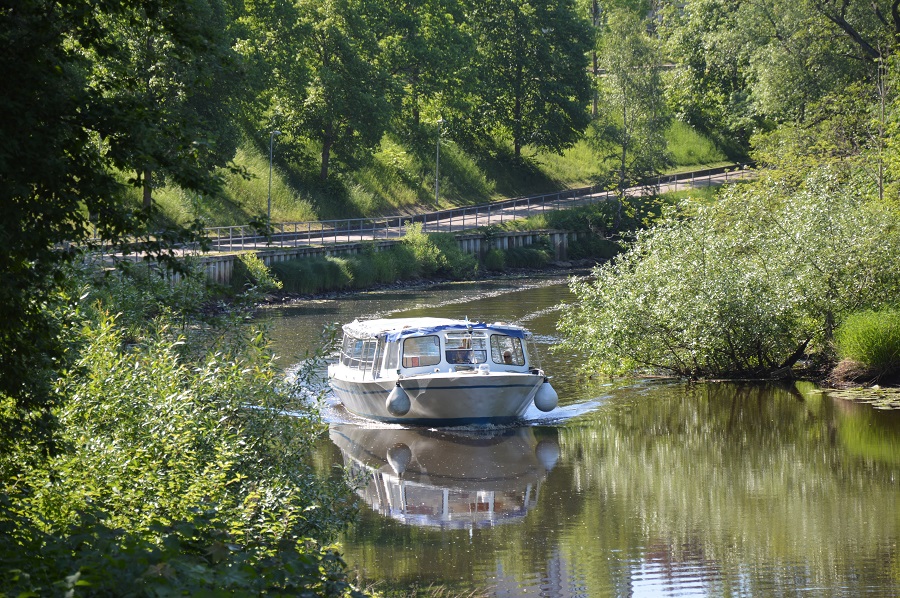 Båtresa med Laxen 2 på Rönne Å från centrala Ängelholm ut mot Skälderviken.