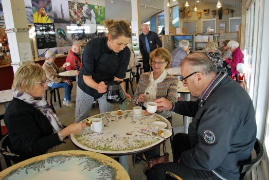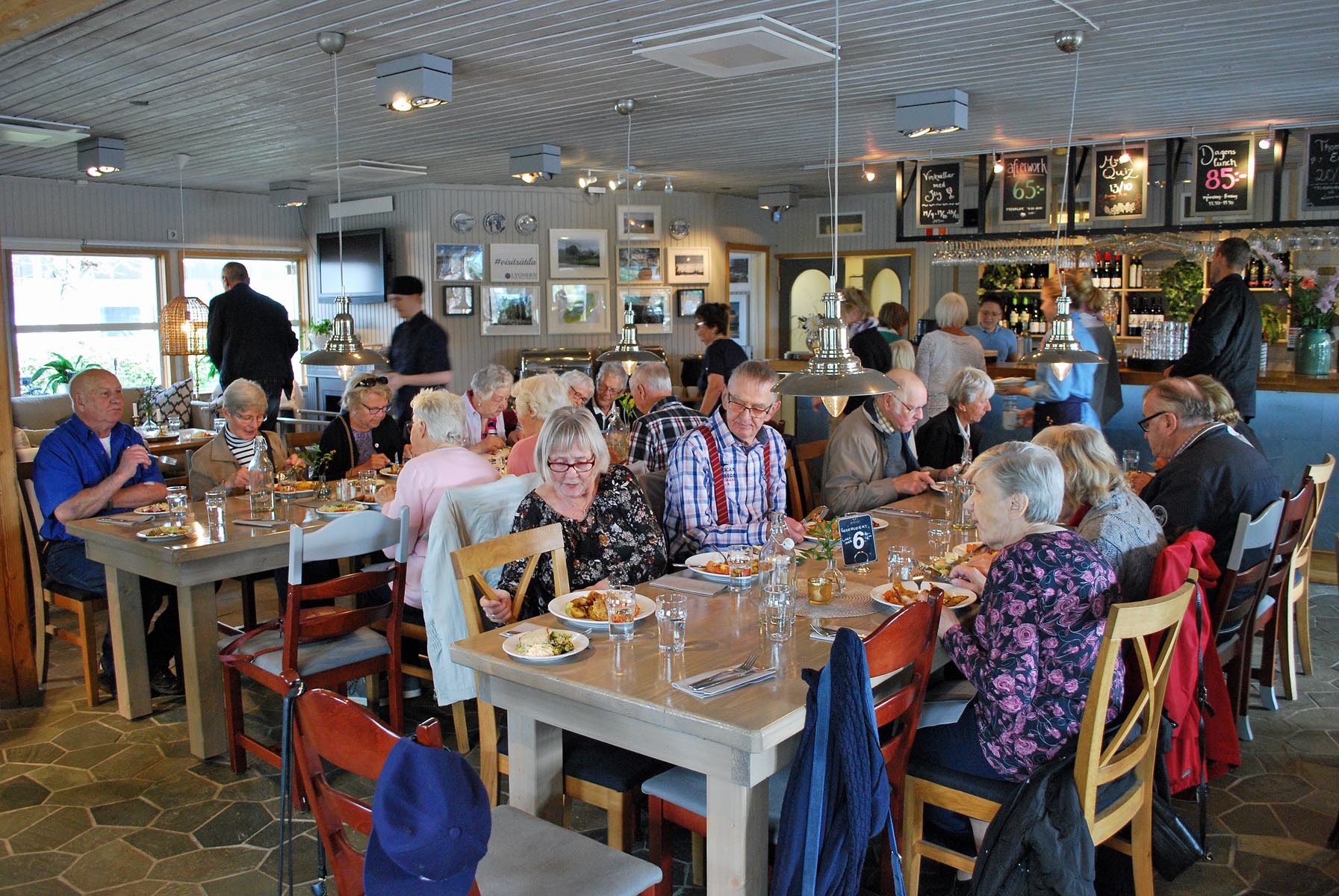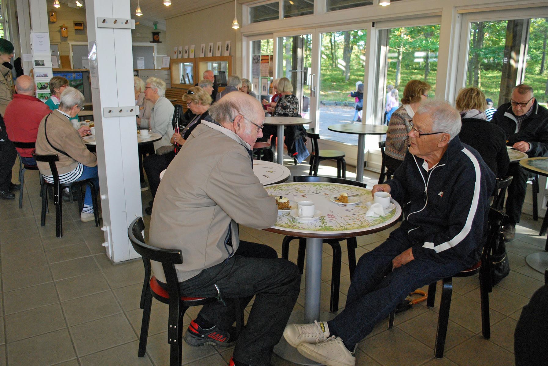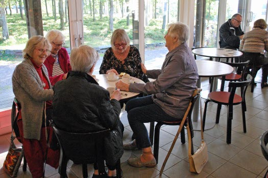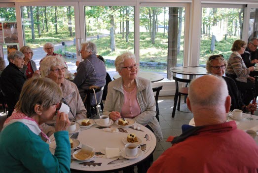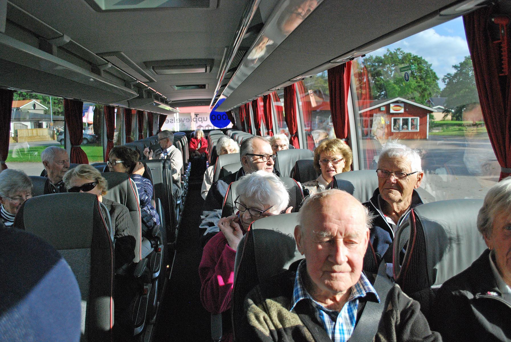 80+resan gick på vackra vägar i skönt höstväder först till Sätila där lunchen serverades. På vägen dit guidade Ruth och Lennart på ett trevligt sätt. Efter lunchen körde bussen ner till den eldrivna båten som gör utfärder på Lygnern. Därefter gick färden vidare till Fjärås Bräcka och Naturum. En genomgång om bräckan och naturumet fick vi höra, varefter kaffe med morotskaka serverades. På hemvägen besöktes Bräutigams marsipantillverkning och deltagarna köpte med sig godis. Kustvägen tillbaka och Lars-Inge tog oss hem till Skällinge efter en givande dag. Tack för en fin resa! Foto: Conny Snäll