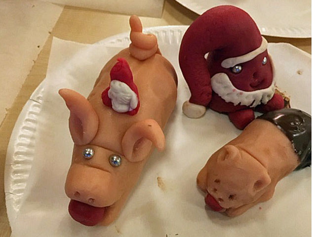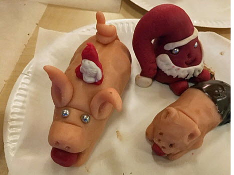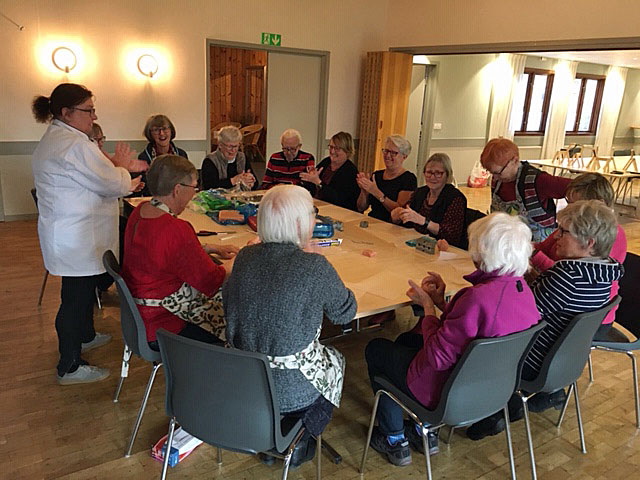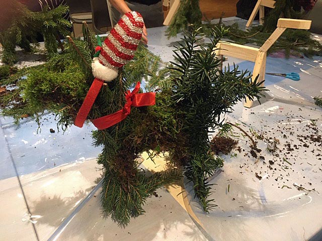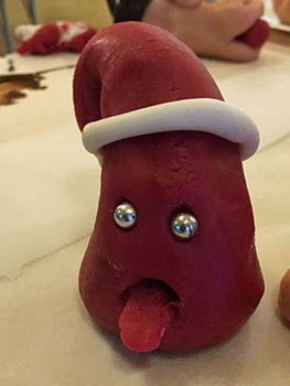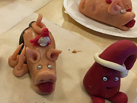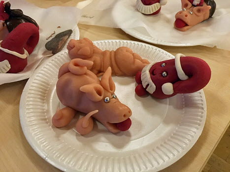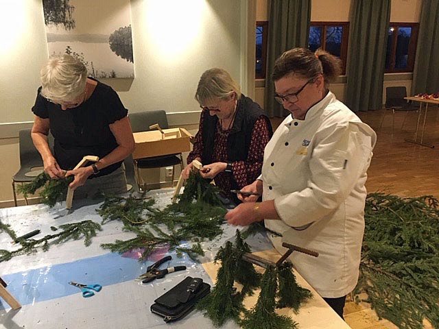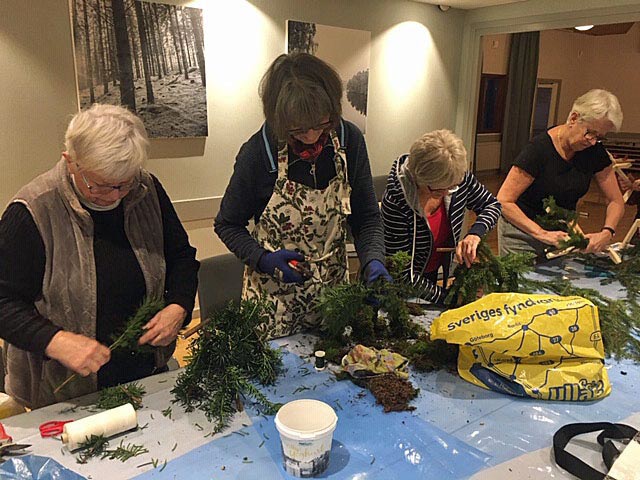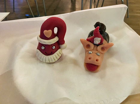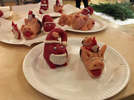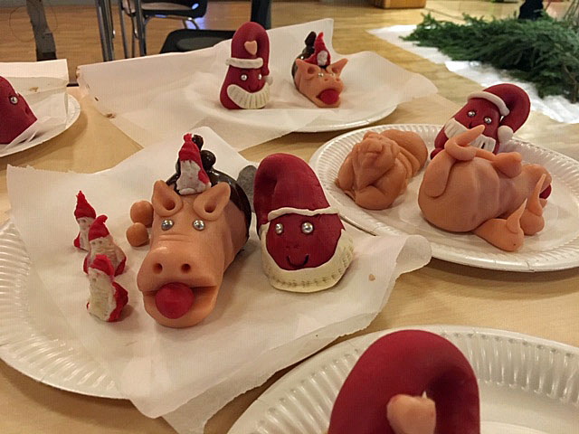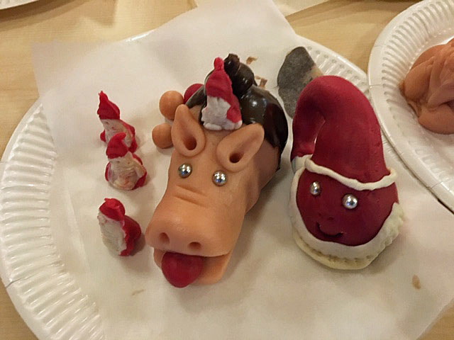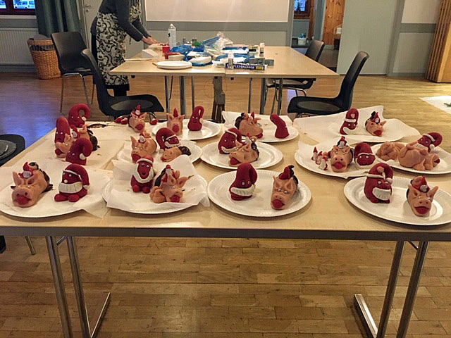 Britt-Marie och Rolf lärde oss göra marsipanfigurer. Kaffe med god kaka och sedan klädde vi julbockar.