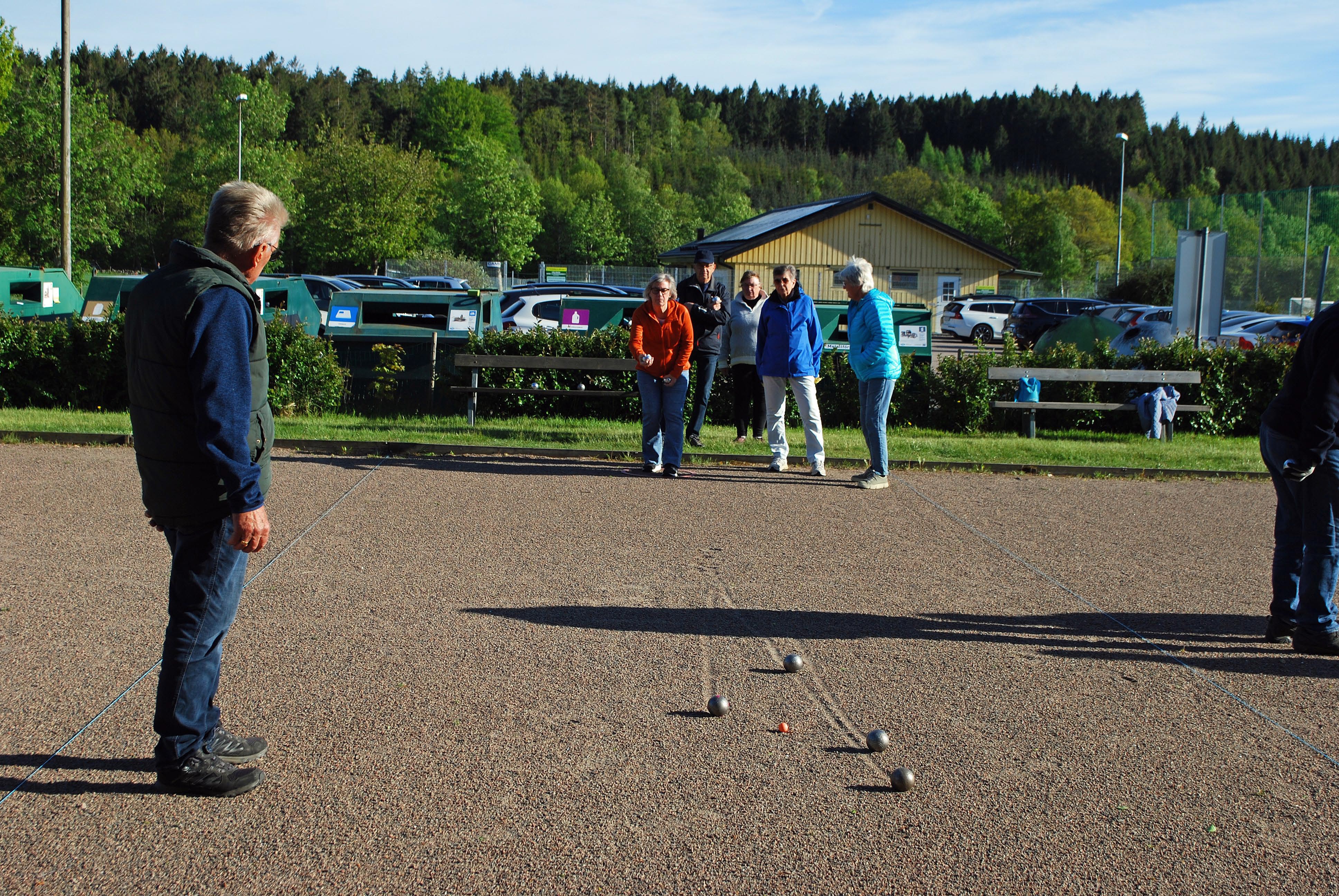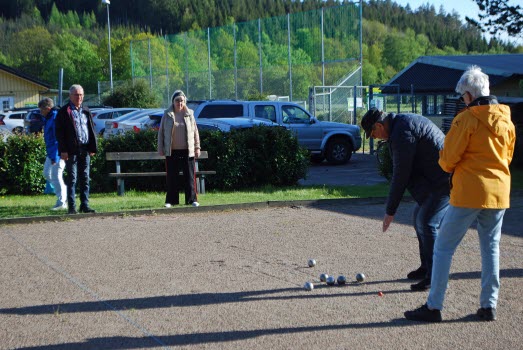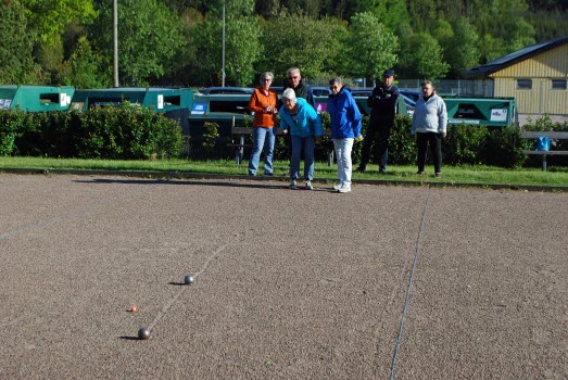 Folkhälsodagen avslutades med Boule. Några av deltagarna var nya i boule, men klarade spelet bra. Lagen lottades och efter en spelomgång bjöd föreningen på god räkpastasallad med tillbehör och lättöl.