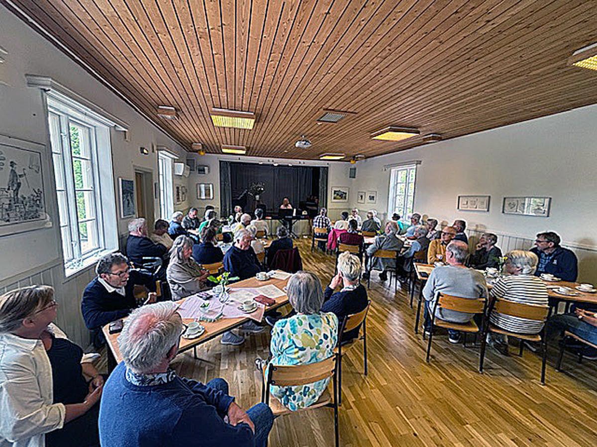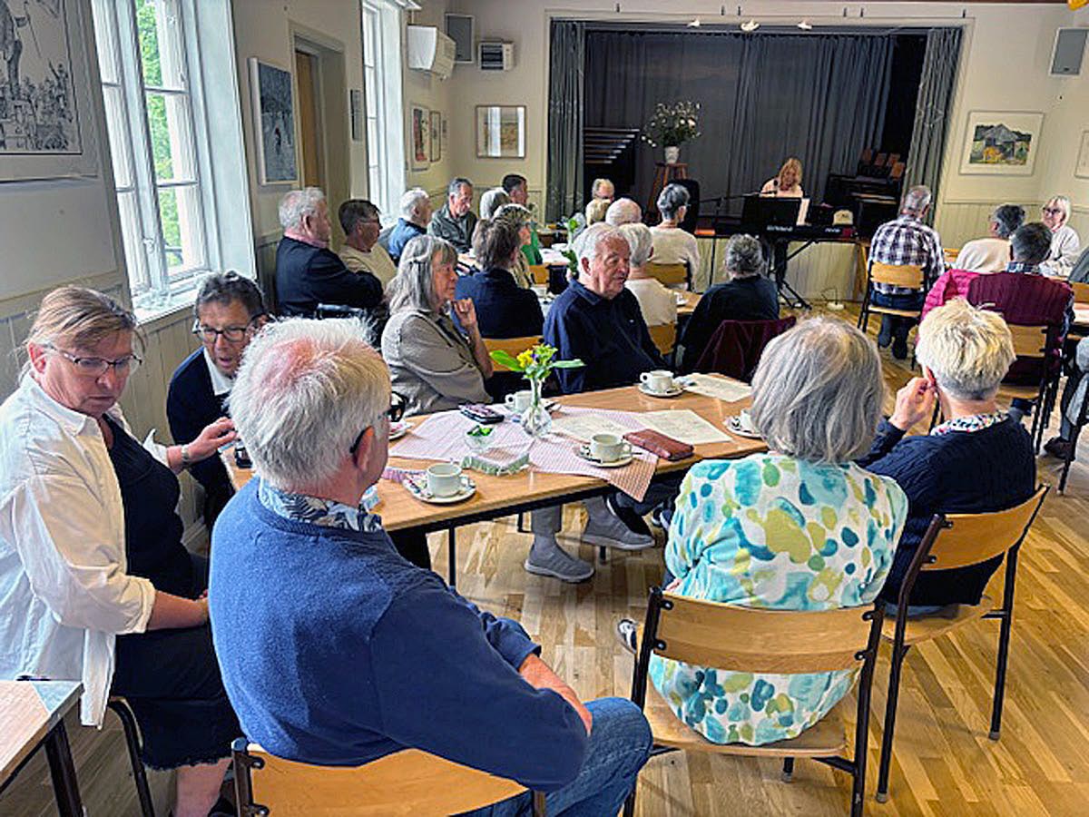 43 medlemmar mötte upp på vårmötet i Nösslinge. Iréne hälsade deltagarna välkomna och speciellt Eva Johbarn. Eva spelade och sjöng på ett fint sätt kända låtar samt lät publiken hjälpa till med några allsånger.