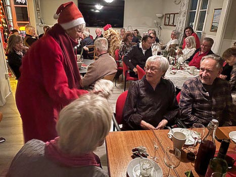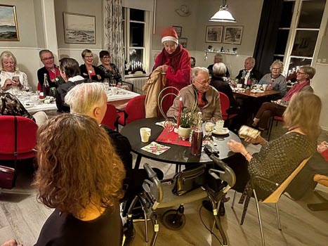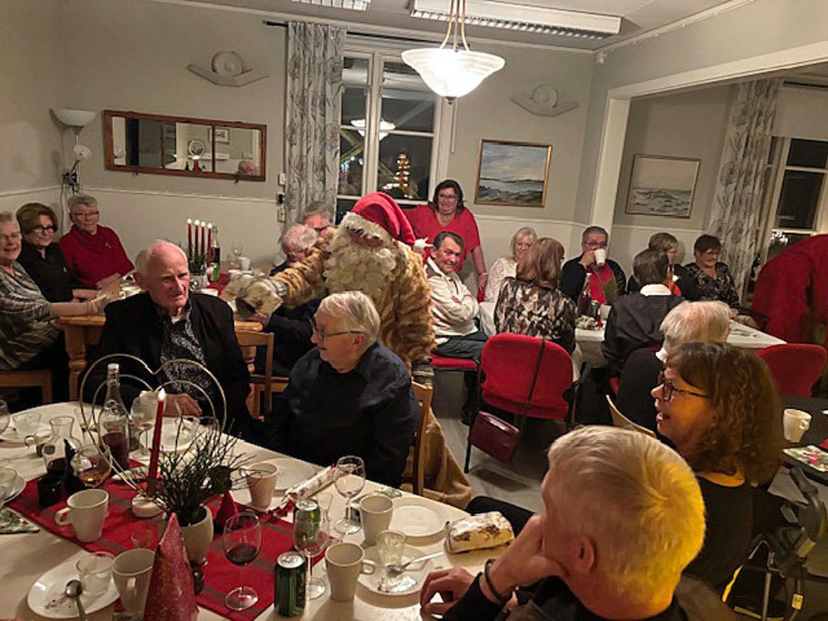 Årets julmingel startade i salongen där glögg med tilltugg intogs.