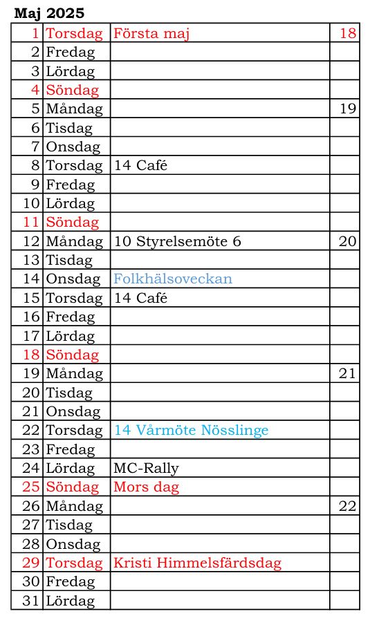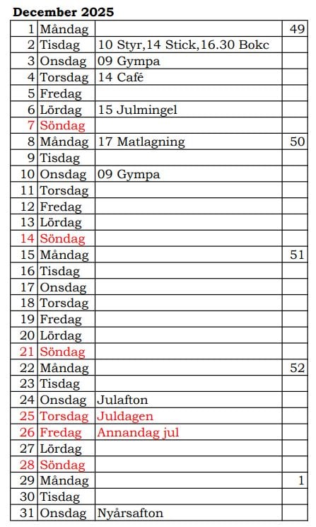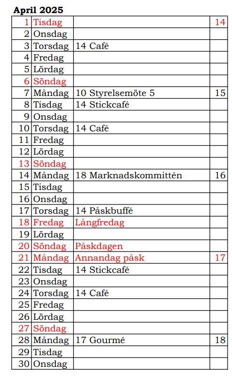 Kalendern är preliminär och kan ändras. Kolla alltid aktiviteter på "Nyheter" som alltid hålls aktuell.