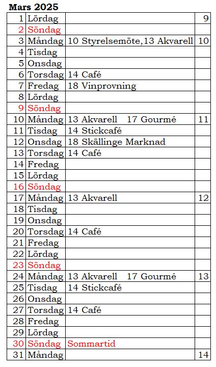 Kalendern är preliminär och kan ändras. Kolla alltid aktiviteter på "Nyheter" som alltid hålls aktuell.
