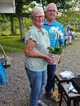 Siw och Ingemar fick en blomma som tack för att de hållit i Boulen.