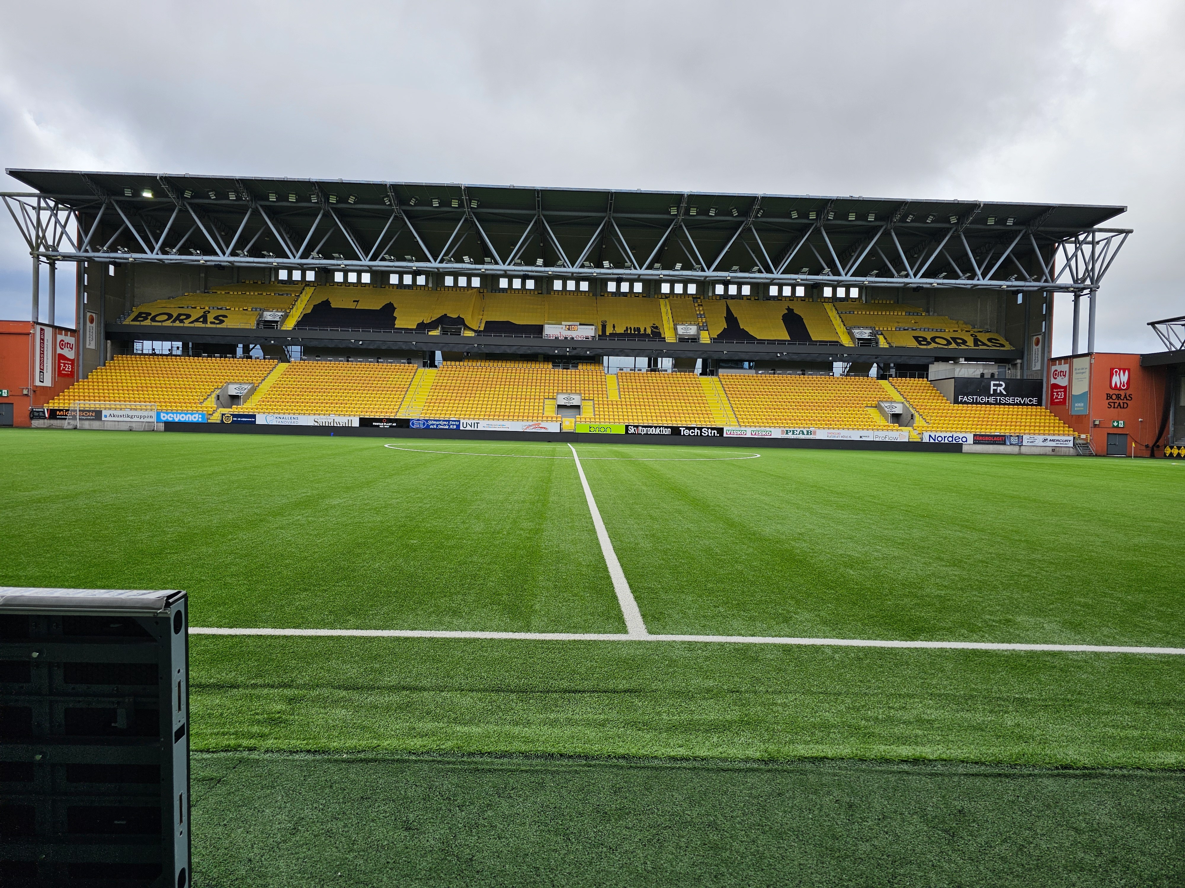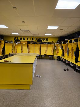 Det var 48 pers. som åkte med på resan och de hämtades upp i Ullared -Källsjö-Fagered och Älvsered sen gick resan vidare till Borås Arena, där 2 guider tog emot oss. De berättade lite om arenans historia, sen gick vi in i spelargången, fick se både hemmlagets och bortalagets omklädningsrum. Var ute och kände på konstgräsplanen.