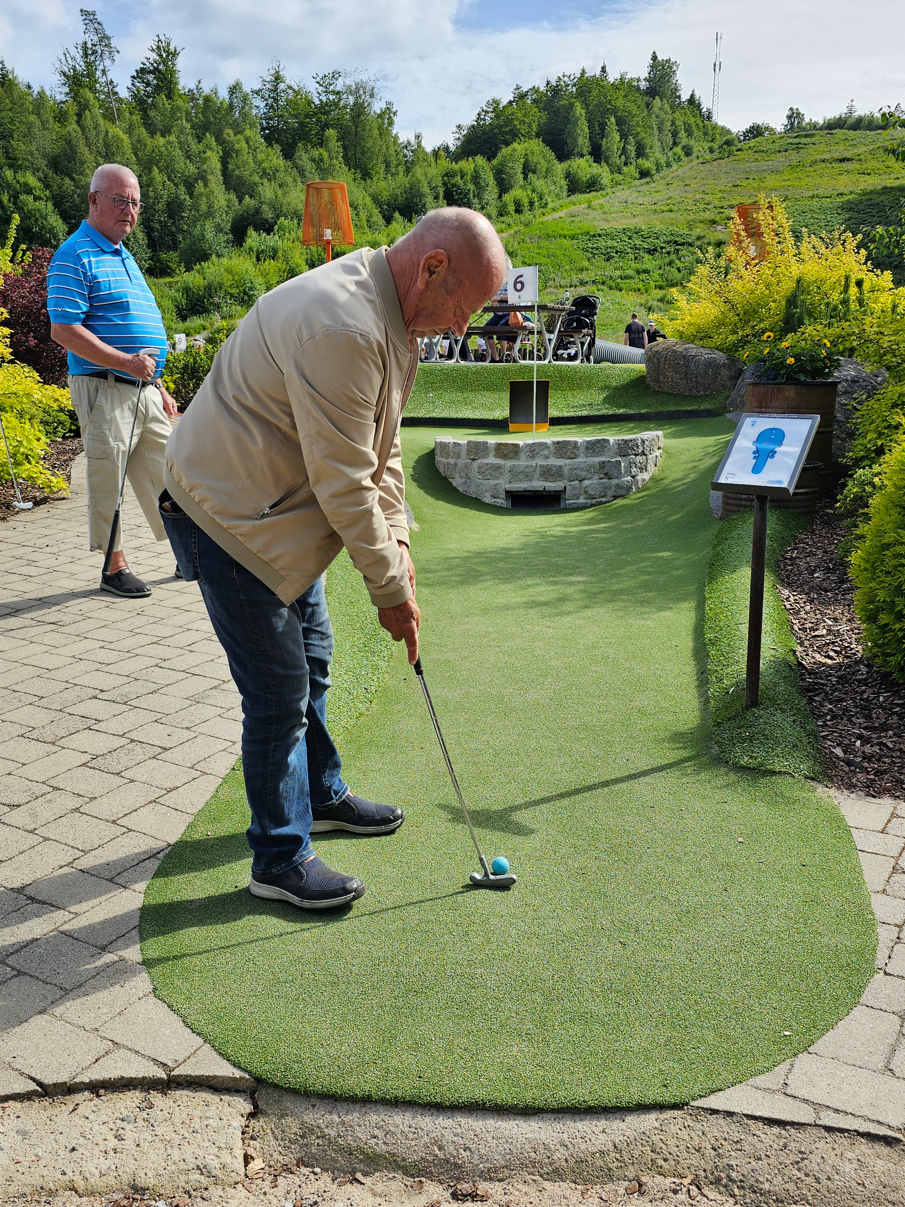 Vi var 29 seniorer som mötte upp för att spela minigolf på äventyrsgolfbanan.