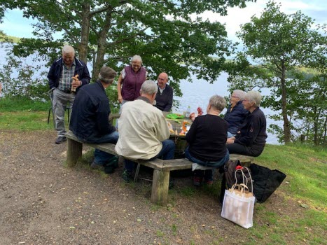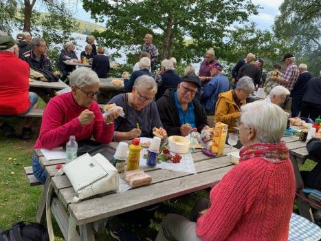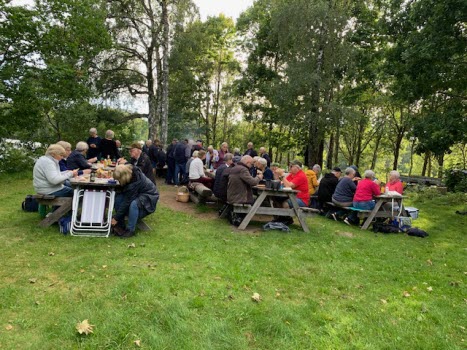 Väl tillbaka hällde Arne upp kokkaffe ur den stora kitteln och med goda hembakta kakor till steg stämningen ytterligare ett par snäpp.