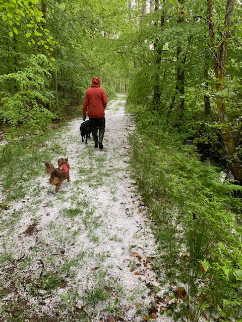 När jag kom hem slutade regnet tillfälligt. Lena var redo att åka till Pukasjöhult för en promenad med hundarna och jag hakade på.