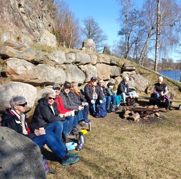 Det finns väl inget bättre sätt att umgås än att gå i lagom takt och samtala och sen plocka fram termos och fikabröd. Hunden Svea snöt visserligen åt sig halva min macka i ett obevakat ögonblick men vad gör det en sån här dag.🌞