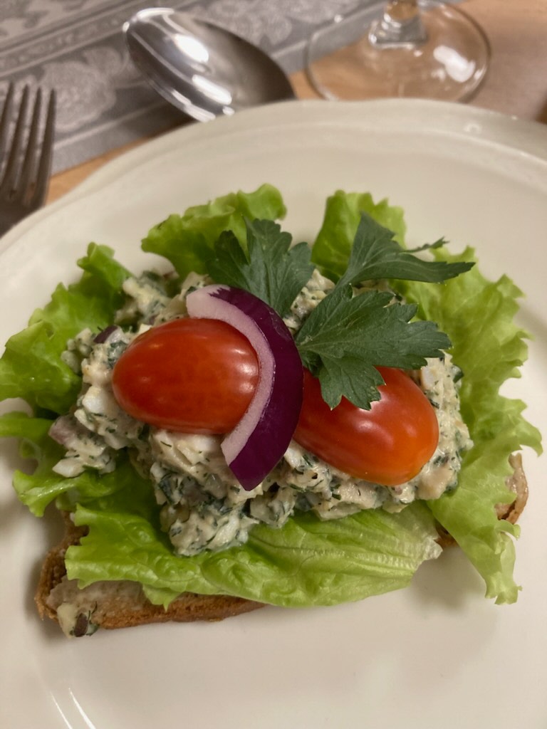 Inga-Lill hade som vanligt skapat en fantastiskt god trerätters supé med liten gubbröramacka, köttgryta, potatis, morötter och sås samt tillbehör.