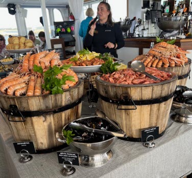 Under resan serverades godsaker från havet som havskräftor, räkor och musslor i massor och allehanda tilltugg. Så himla gott!