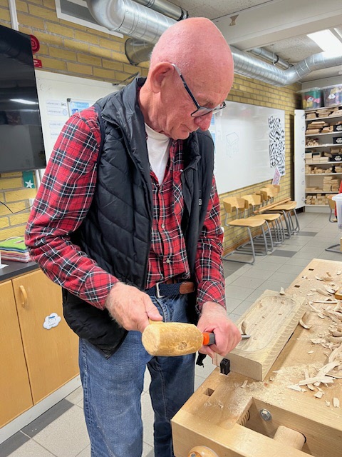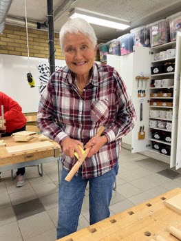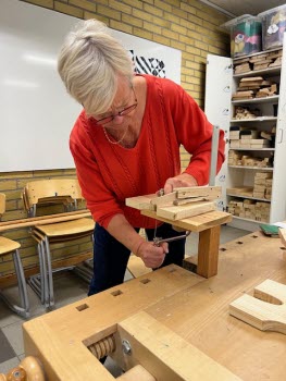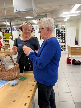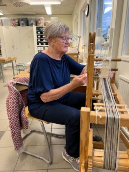 Så är då slöjdcirkeln igång. Vår ledare Helena Lindkvist är slöjdlärare på Okome- och Ätranskolanen och tusenkonstnär så vi får välja vad vi vill göra och hon hjälper oss. Astrid, Inger och Inga-Lill valde att börja med att klä om stolsitsar, Annika väver vackra band, Elisabeth krokar en mössa till ett barnbarn, Vicke gröper ut en tjock plankbit som ska bli en skål, Ann-Britt snickrar en pall och Rose-Marie gör en annan sorts pall.