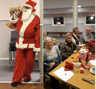 64 glada pensionärer lät sig väl smaka av det goda julbordet som Maggan och Görel fixade till oss. Där fanns allt som ett traditionellt julbord bör innehålla. Nya Widuo spelade glada snapsvisor till bäsken och sedan var det en del som tog en svängom på dansgolvet. Kvällen avslutades med Ris a la Malta och utlottning av julstjärnor. En överraskning bjöds också av en vig och alert tomte som drog många skratt.