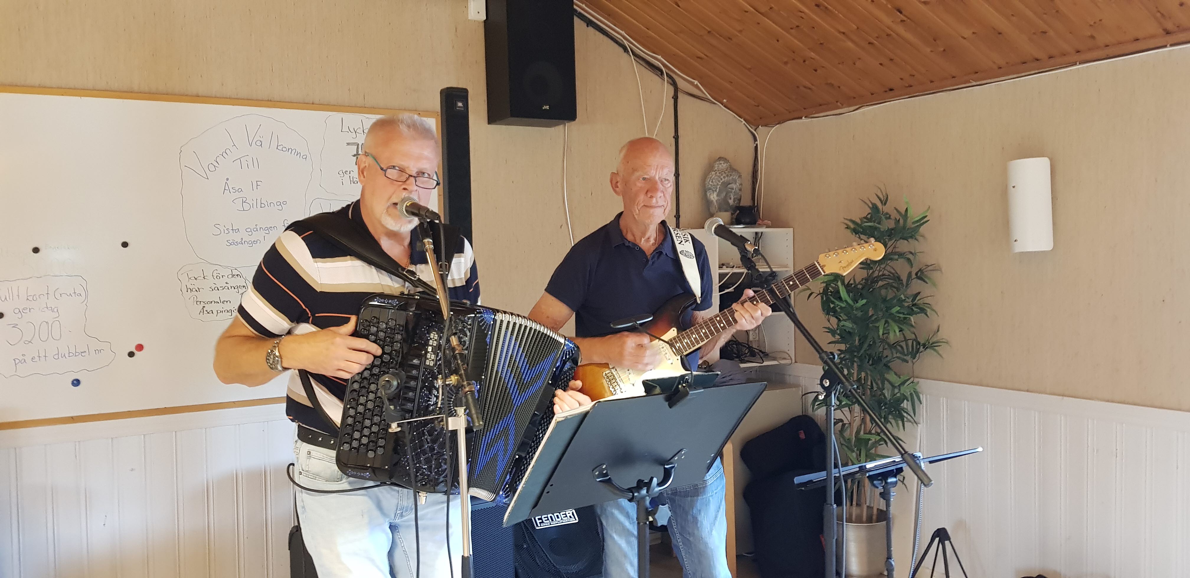 För dagens underhållning stod Kjelles, två goa gubbar på dragspel och gitarr. De spelade och sjöng många härliga och trallvänliga låtar. En skön blandning av country, Creedence och Lasse Dahlqvist och annat som togs emot väl av publiken. Vi både sjöng med och klappade takten. I en låt sjöng de om grabbarna över 35, men vi menade att de borde sjunga om grabbarna över 75 i stället, för att bättre spegla publiken.
