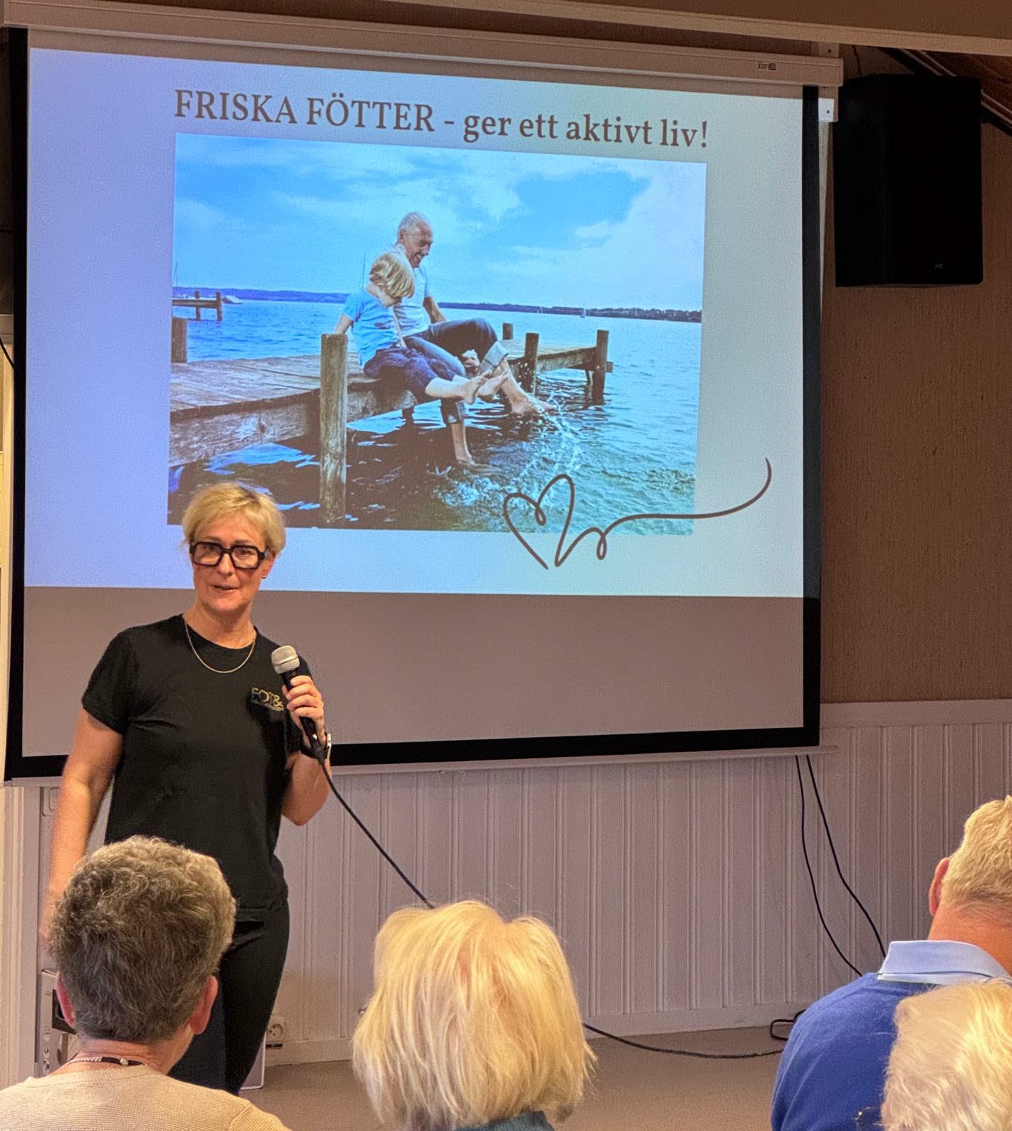 Catrine fortsatte med att gå igenom vad man kan göra själv för att stärka sina fötter som t ex stödstrumpor, tåhävningar och spreta med tårna. Egenvård i form av tvätta fötterna, torka mellan tårna, smörja in fötterna och fotriktiga skor m m är också viktigt.