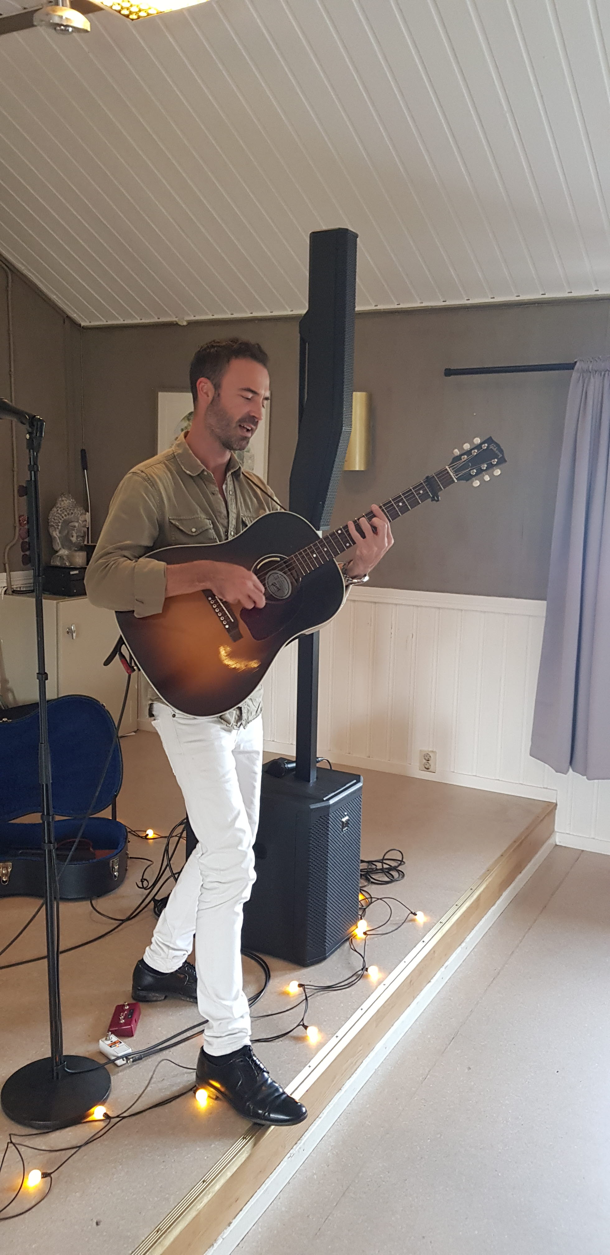 När alla var mätta och belåtna var det dags för Edward C Johansson att äntra scenen. Och som han gjorde det! Med härlig röst och fint gitarrackompanjemang framförde han en lång rad välkända rock- och countrylåtar, mestadels från 60-talet. Det var Elvis, Rick Nelson, Tommy Steele, Willy Nelson, Cliff Richard och Johnny Cash med flera. Publiken sjöng med i många av låtarna. Edward berättade också om sina resor till USA och Nashville och hur han fått tillträde till Studio B, där Elvis sjöng in många låtar. Det var magiskt att få pröva samma piano som ”The King” spelat på.