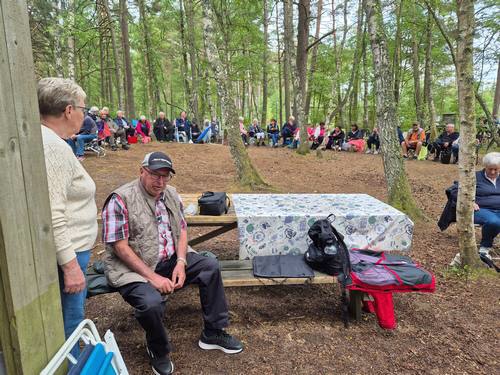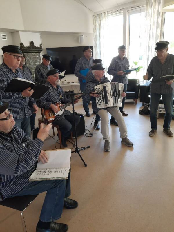 En grupp förväntansfulla seniorer hörde på Annies Drängar från Haverdal. Annies gård drivs av en förening med bland annat dessa drängar, en sånggrupp på 10-15 personer, som är ute och spelar och sjunger i Halland. Glada och kända schlager, som alla kunde sjunga med i. Paus med "gofika" och sedan tog drängarna takt och ton igen efter fikat. Publiken gick trallande hem.