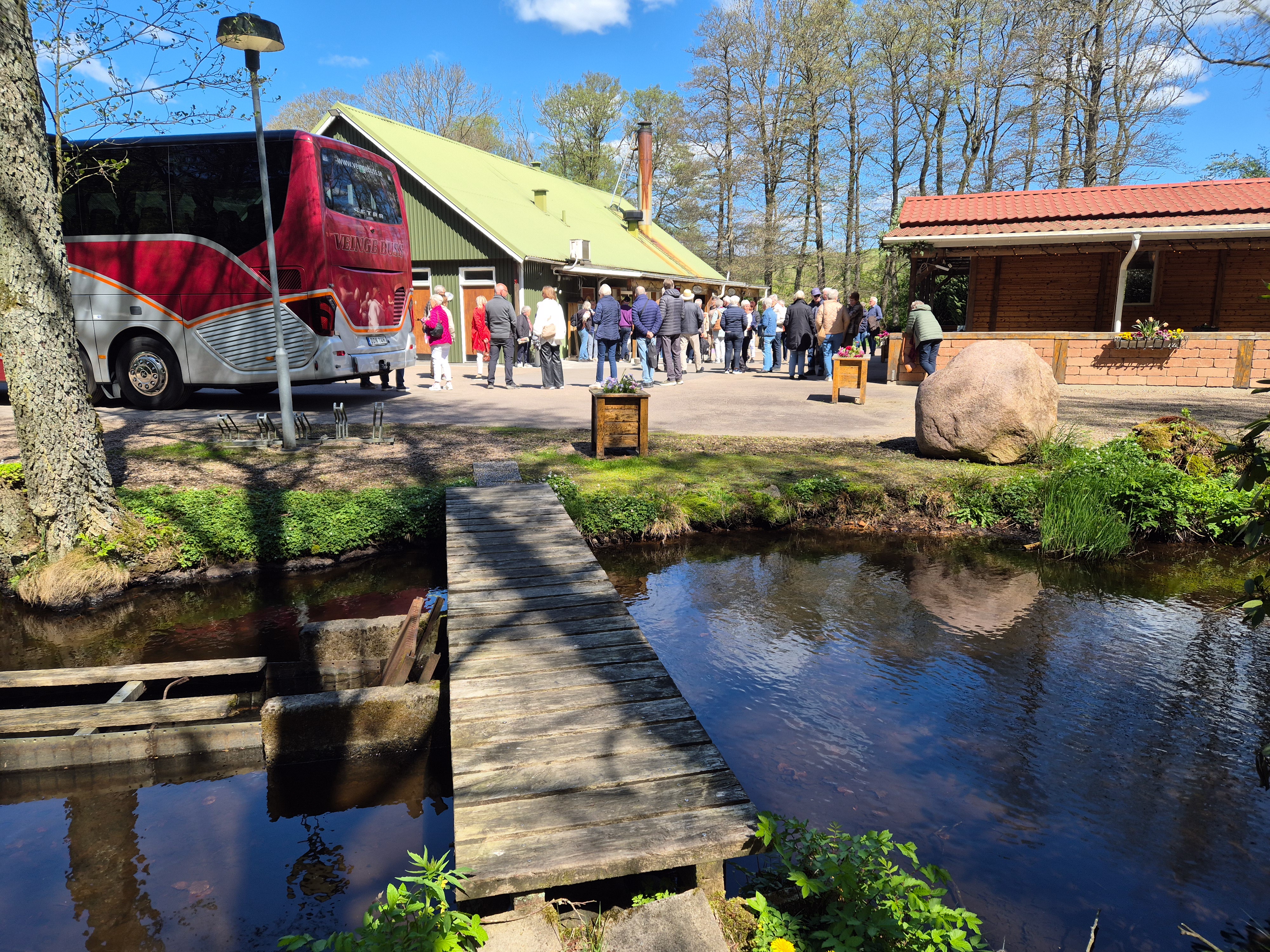Vår busschaufför Ola på Veinge Buss, tar oss till Dymöllans Ålrökeri där vi äter en god fisksoppa, innan vi dricker kaffe och äter Silviakaka. Vidare färd till Sånnagården, som är en gårdsbutik, där alla får möjlighet att handla både blommor och grönsaker, innan är det dags för en glasspaus före hemfärd.