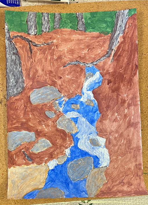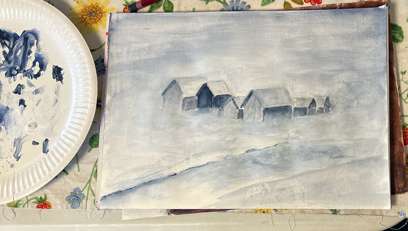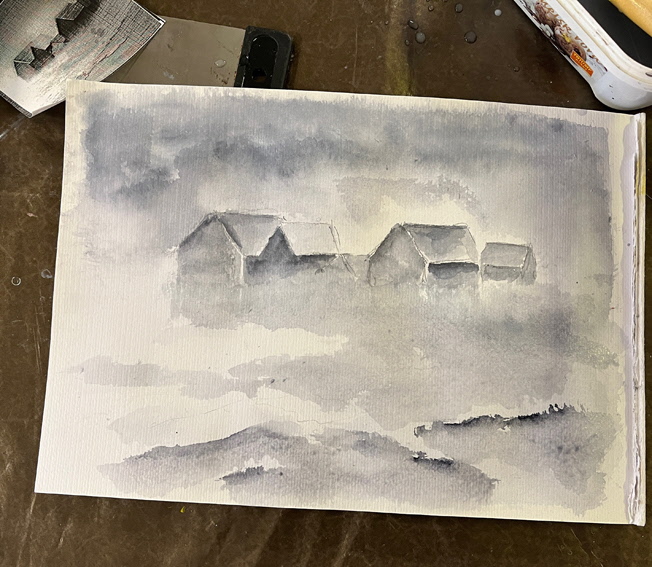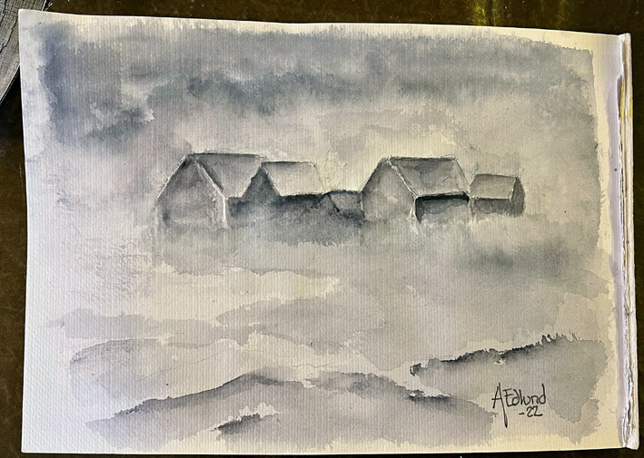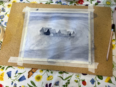 Denna gången försöker vi göra något med en (1) färg och använda olika nyanser, med hjälp av utspädning (vatten), för att få fram djup och skuggor.