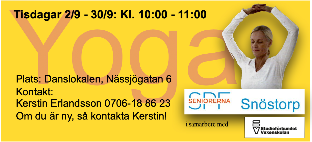 Vi startar säsongens Yoga tisdag den 2 september och sedan fyra ytterligare tisdagar till och med den 30 september.