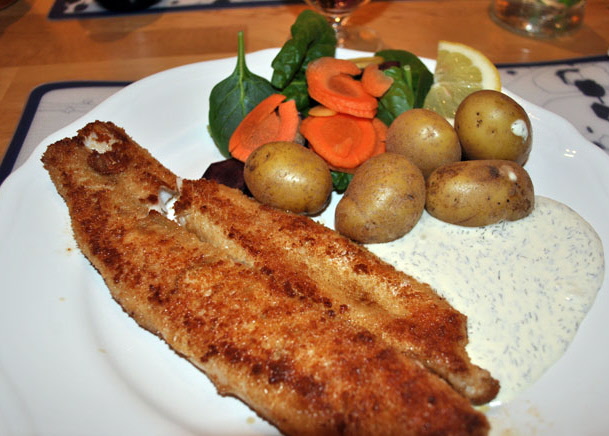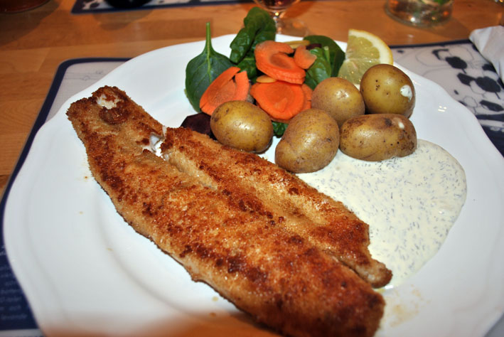 Vi fick avnjuta en lunch som var en smakrik upplevelse; Smörstekt Gös med tillbehör.