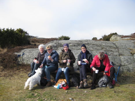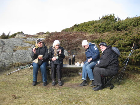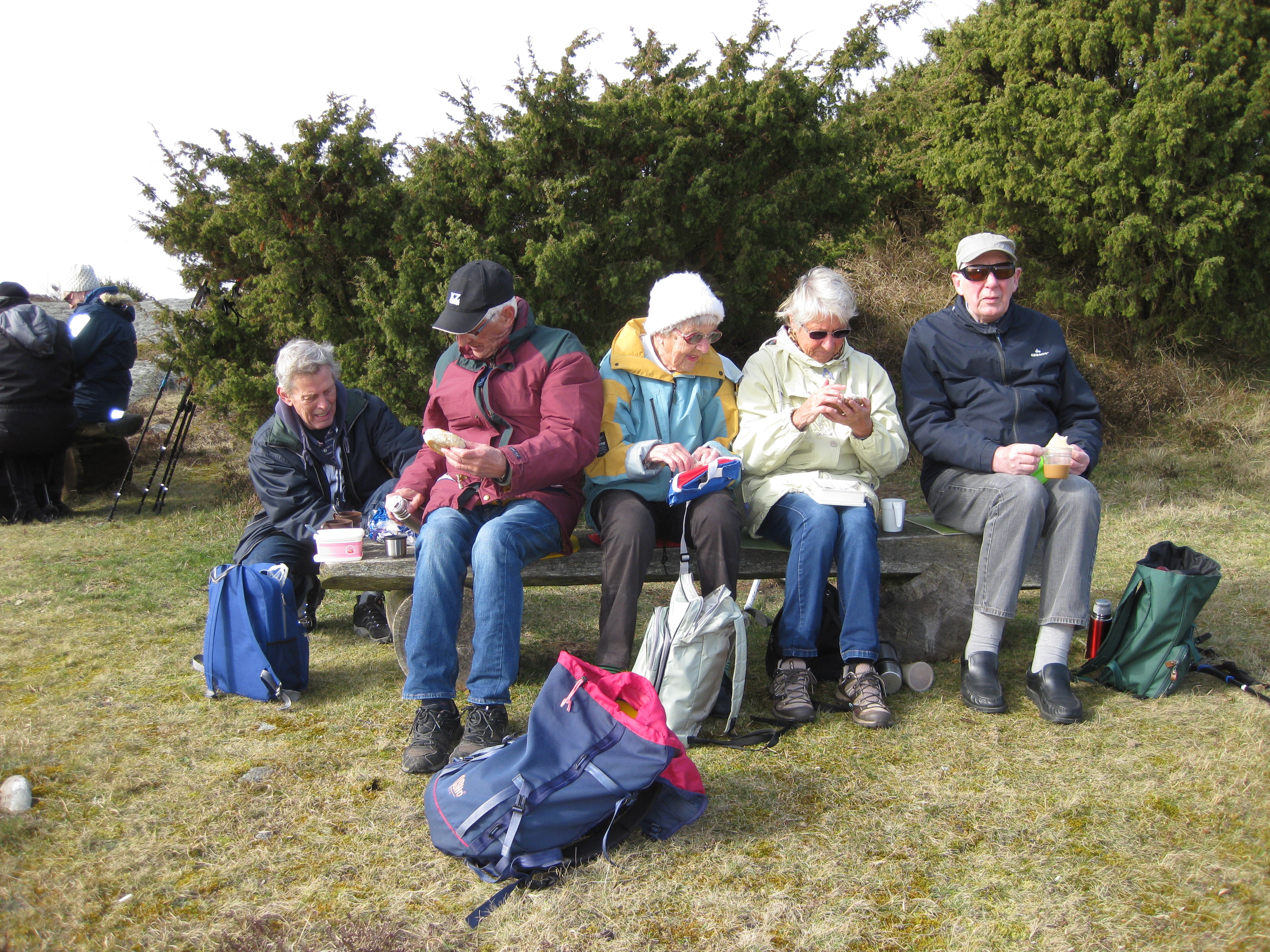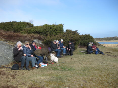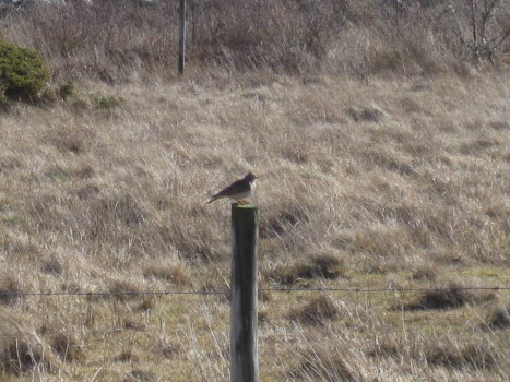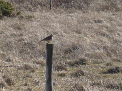 Promenad 2017-04-03 Vallda Sandö, med fika utomhus och spaning på en Ängspiplärka.