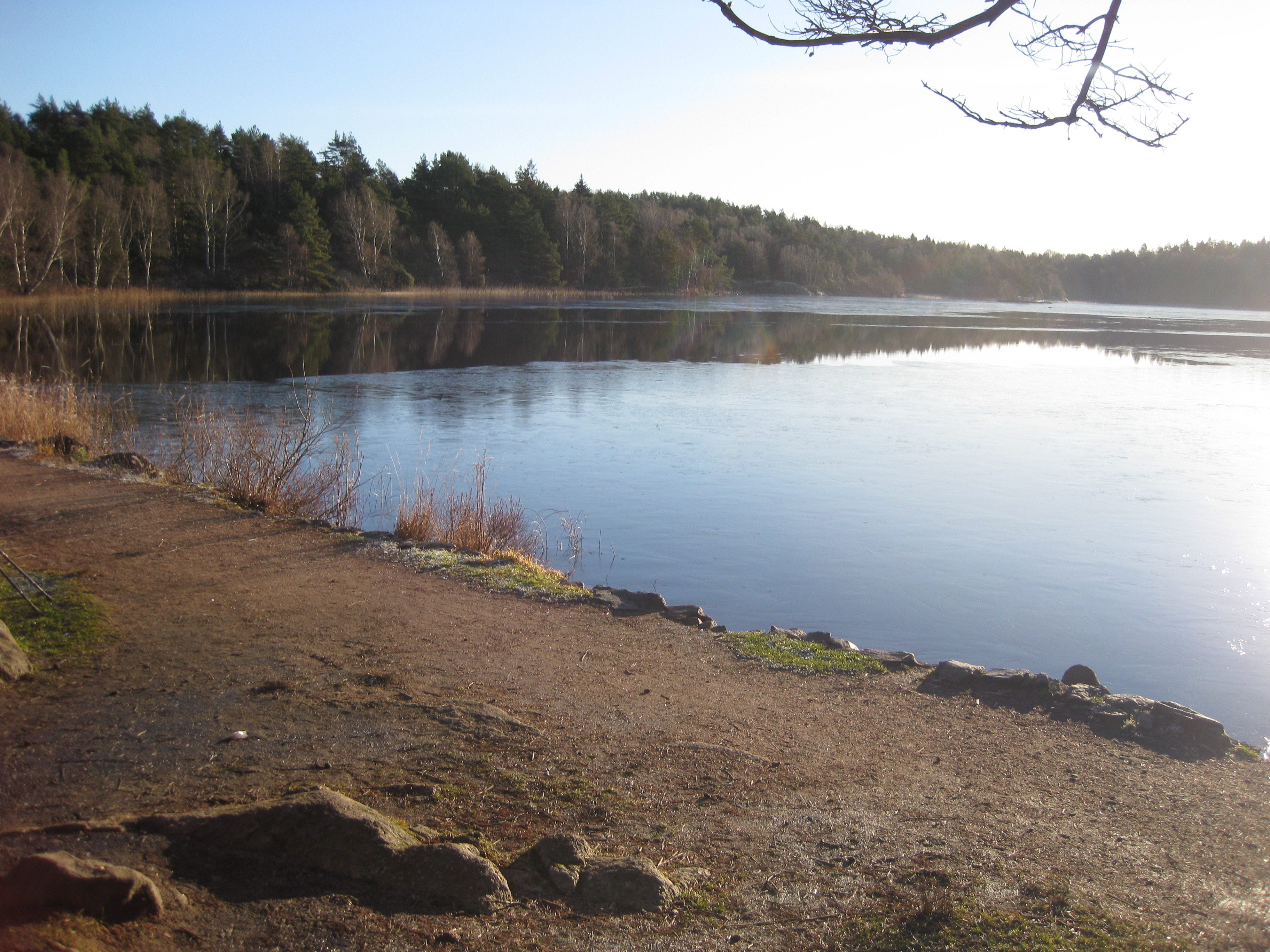 Promenad 2017-12-04 Vi gick runt Oxsjön, hade korvgrillning efter gåendet, smakade ljuvligt i solskenet