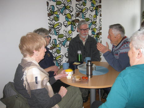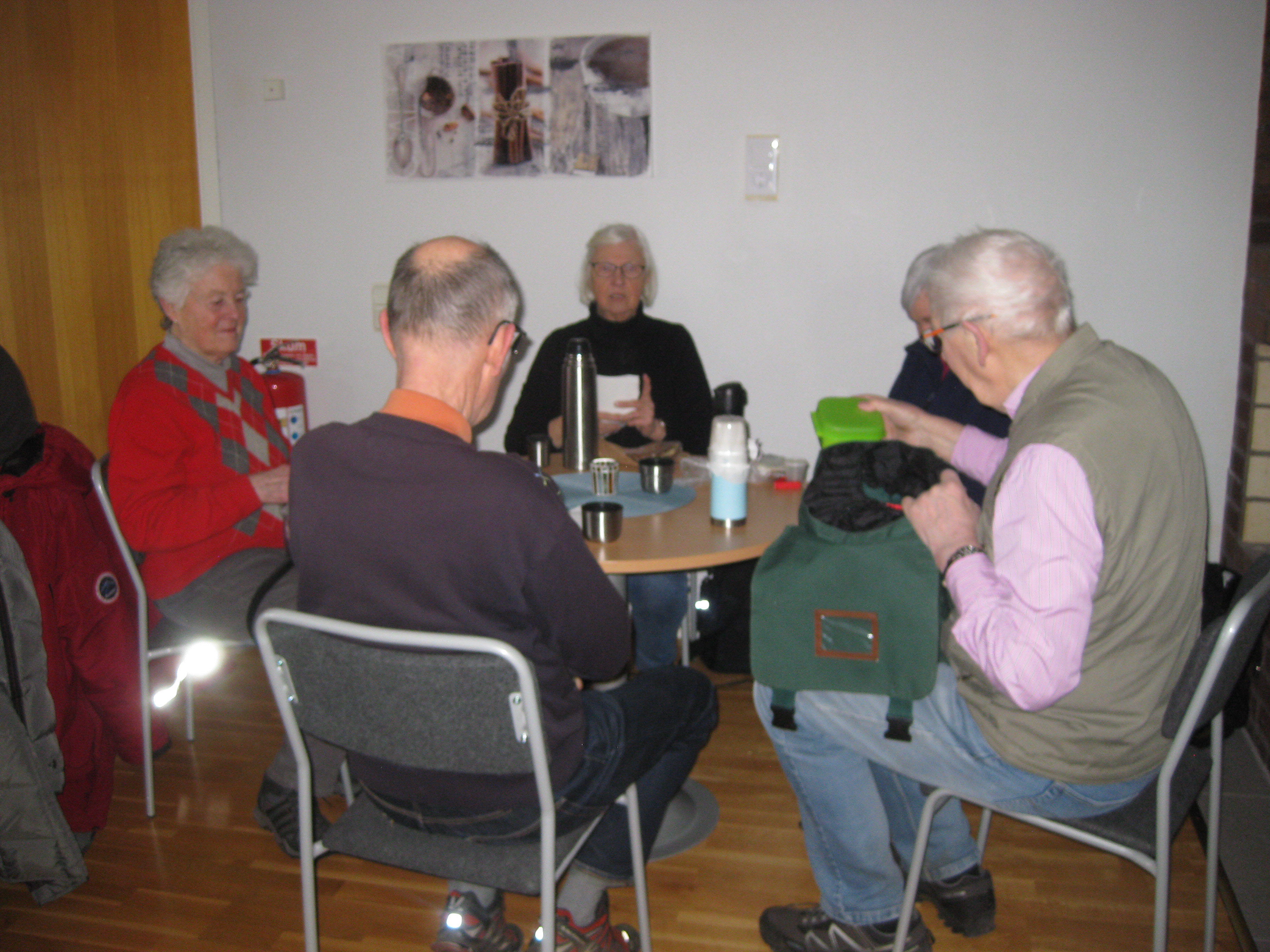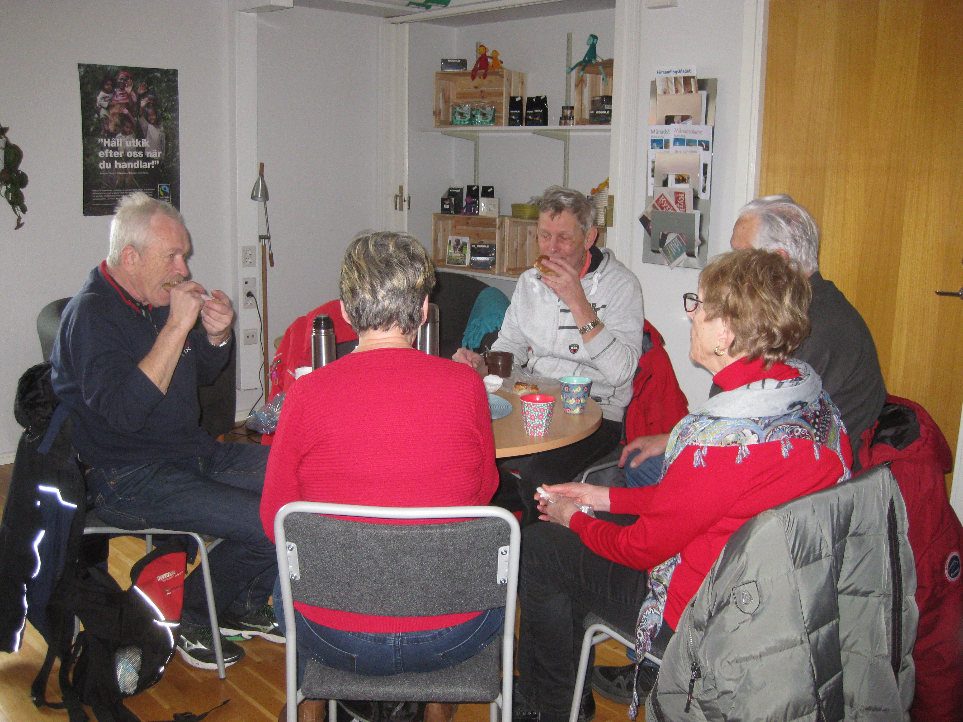 Promenad 2019-03-18 Skällared, fast fika inomhus i församlingshemmet