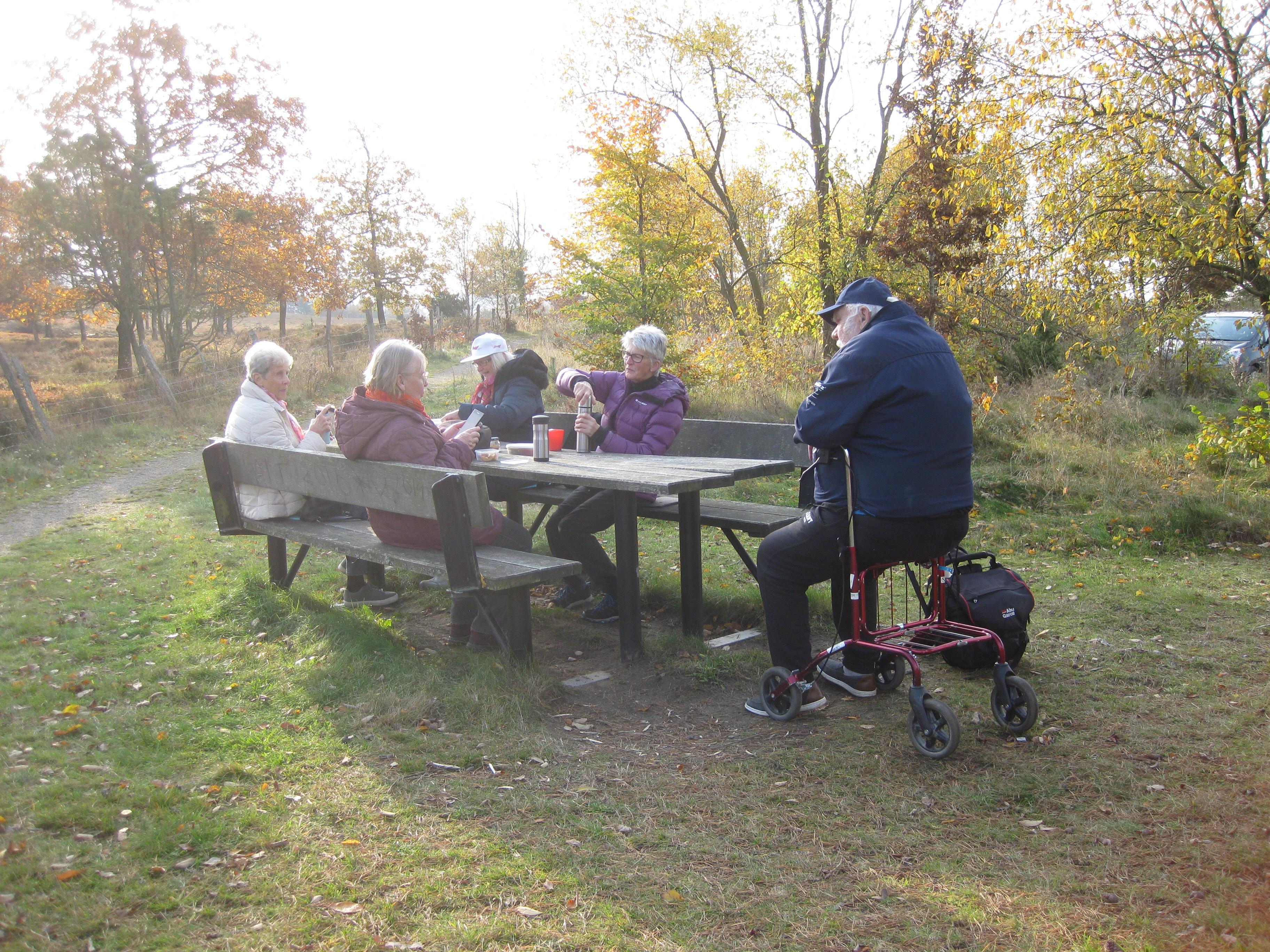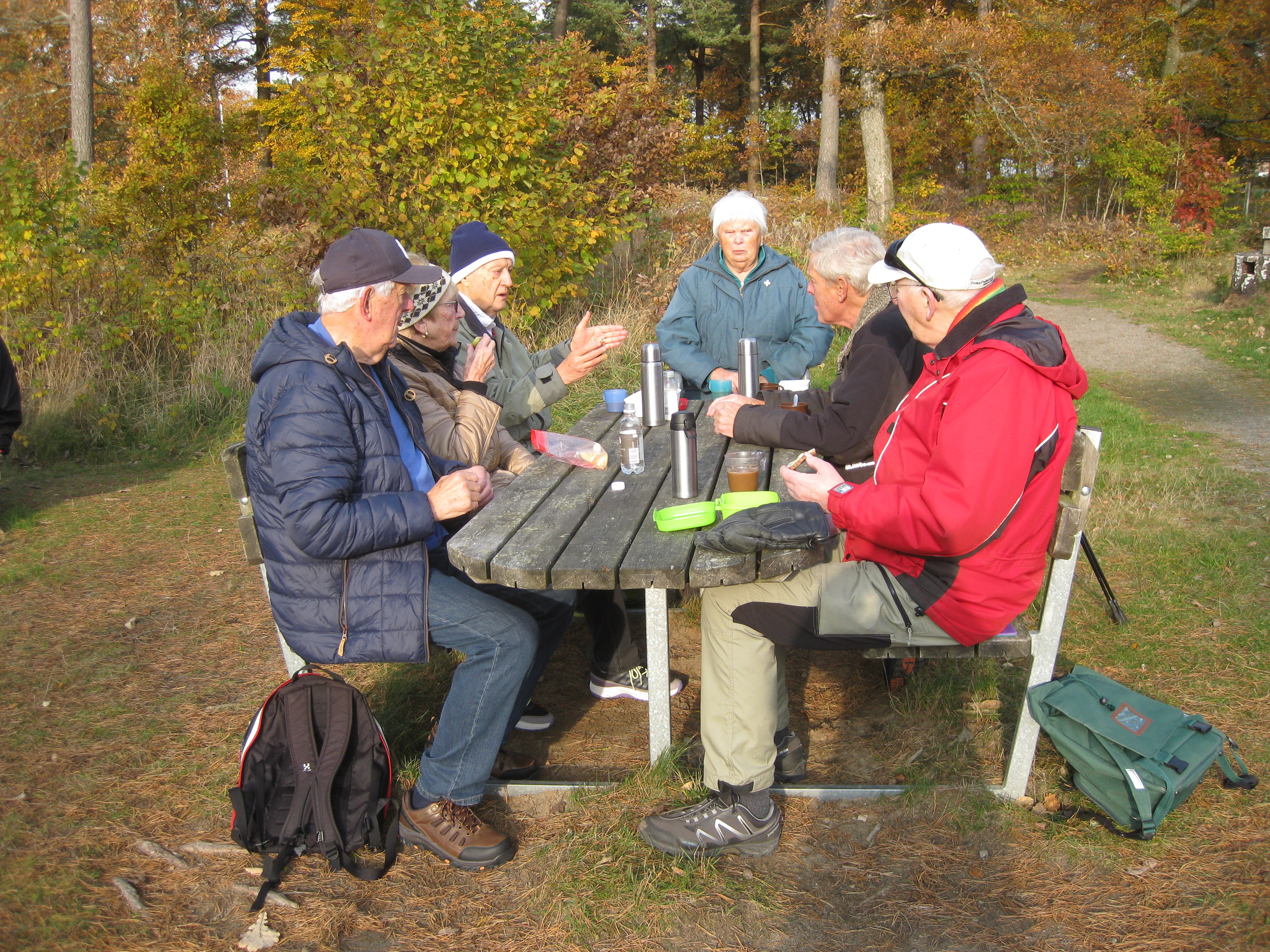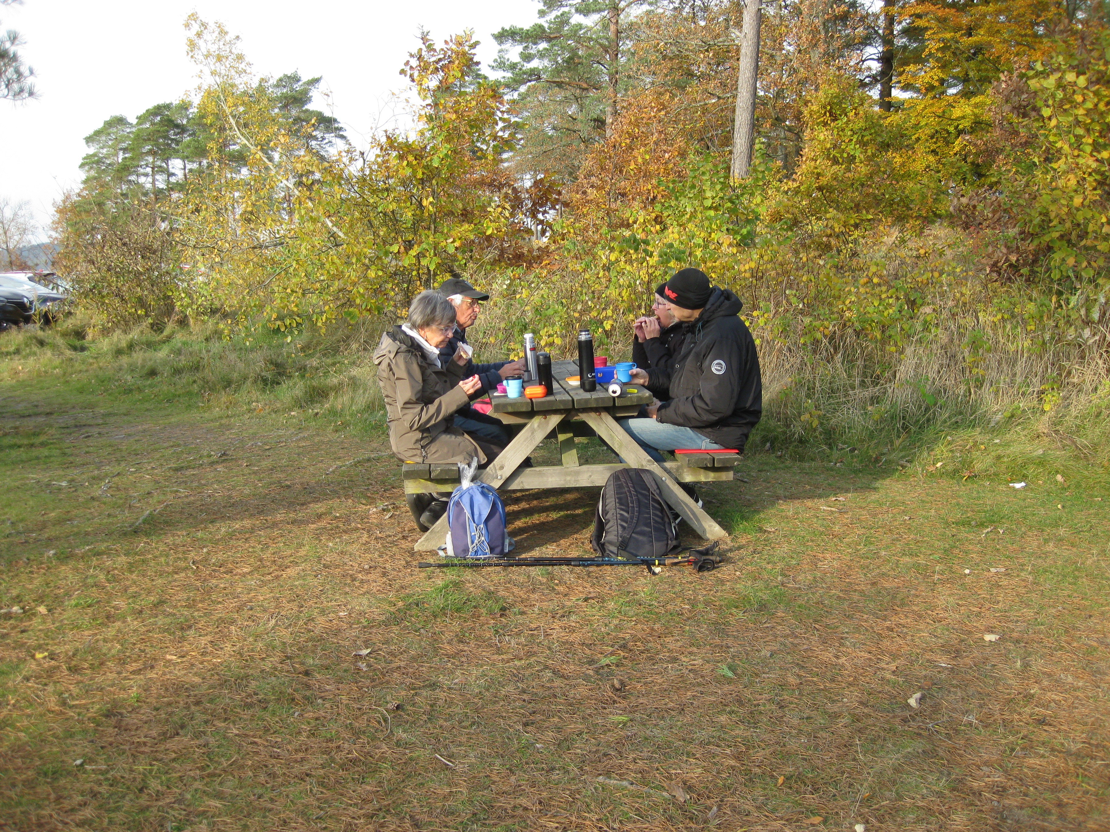 Promenad 2021-10-25 Fjärås bräcka i hyfsat väder, fikade utomhus i alla fall