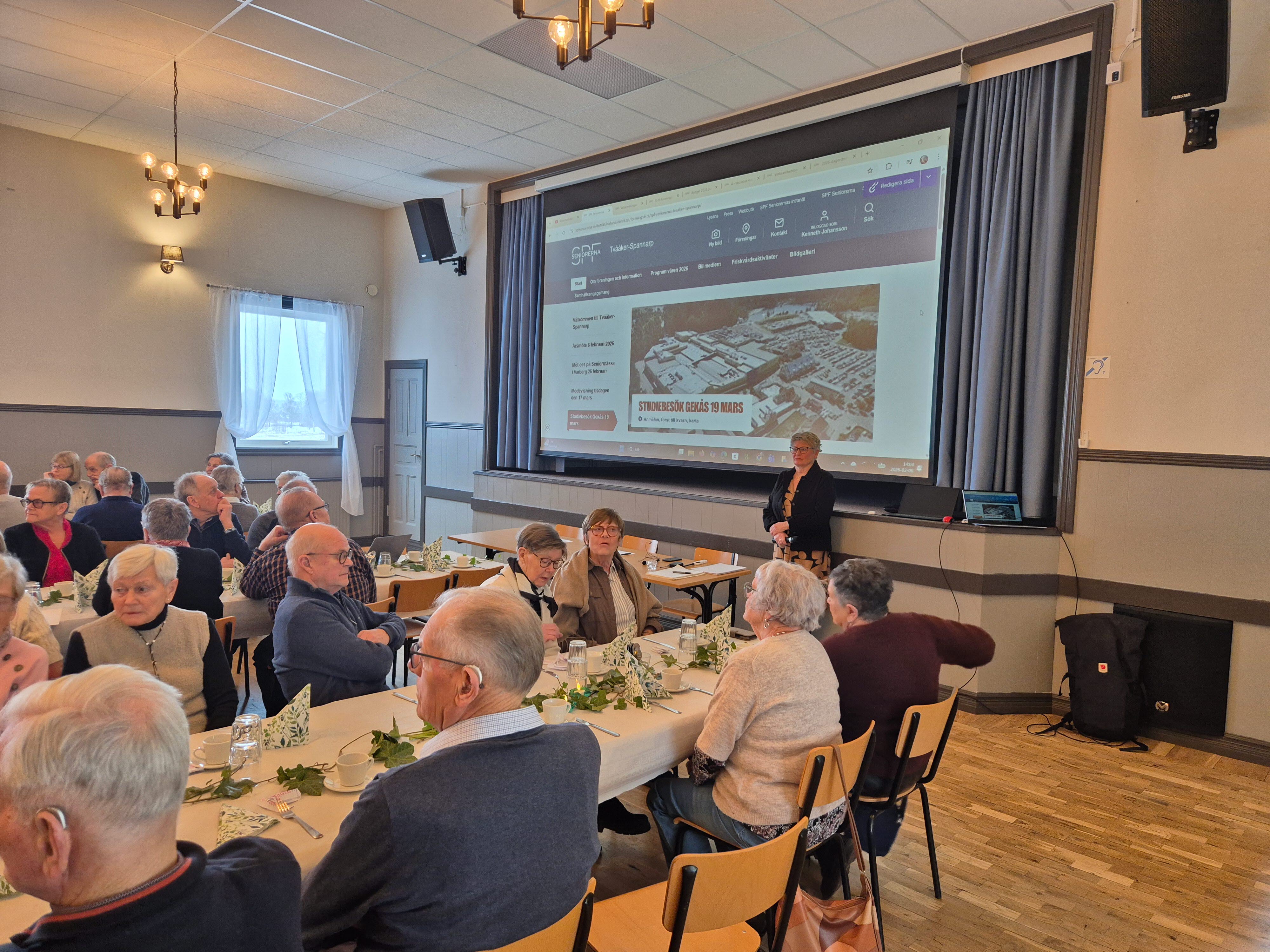 Årets andra ”snösmocka” kom lagom till årets årsmöte hos SPF Seniorerna i Tvååker och Spannarp. Trots det, eller tack vare det?, kunde det ändå räknas i närapå 70 personer i Himle bygdegård. Värdpar för årsmötet var Annette och Yngwe Gustafsson samt Brita och Ingemar Olsson som hade dukat långbord och gjort fina bordsdekorationer.