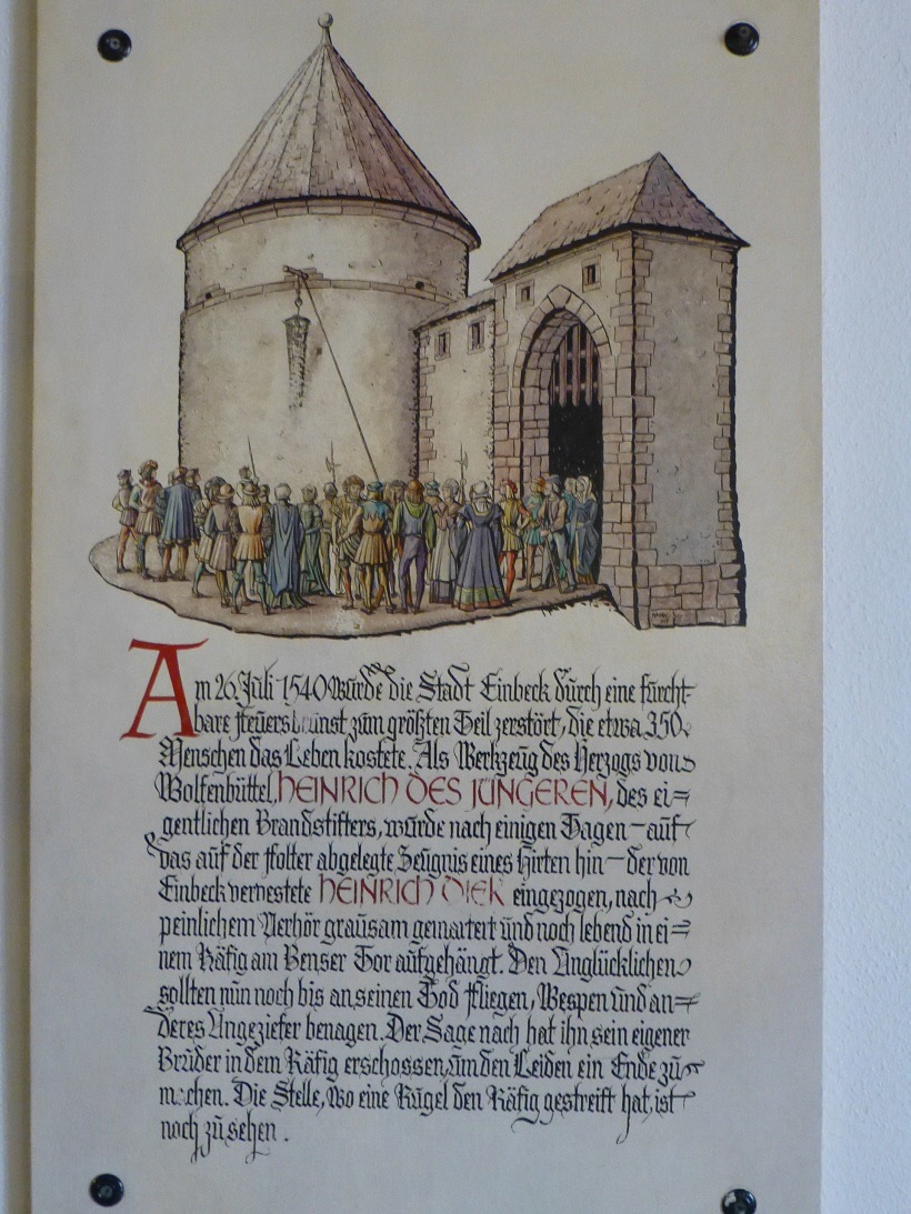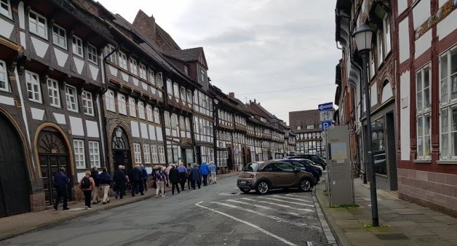 På eftermiddagen åkte vi till Einbeck, grundad på 1100-talet, tillhörde Hansan under medeltiden och omges av en hög stadsmur. Staden förstördes nästan helt av brand år 1540, men byggdes snabbt upp igen. Många av de medeltida korsvirkeshusen i Einbeck kommer från denna period. Husen är dekorerade med färgglada detaljer och symboler t ex bagarens hus, fiskarens, apoteket mm.