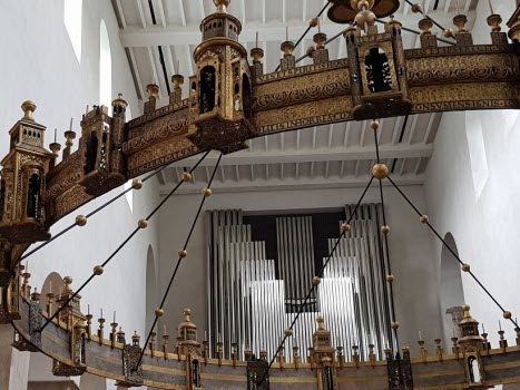 Två enorma hjulformade kandelabrar från 1000-talet.
