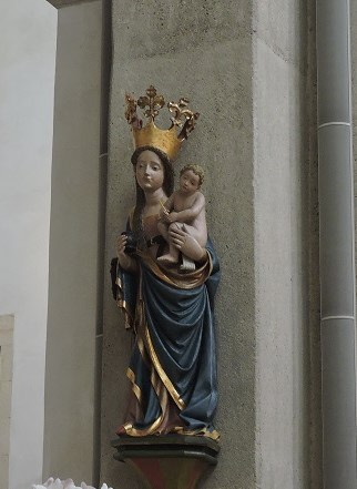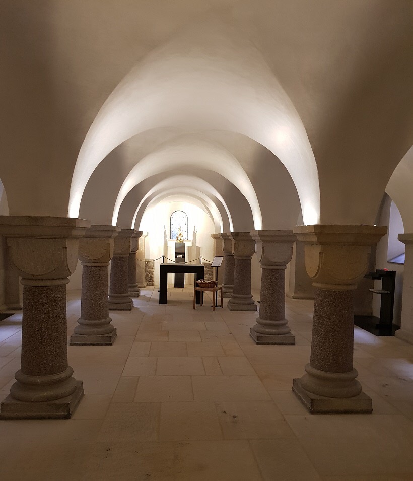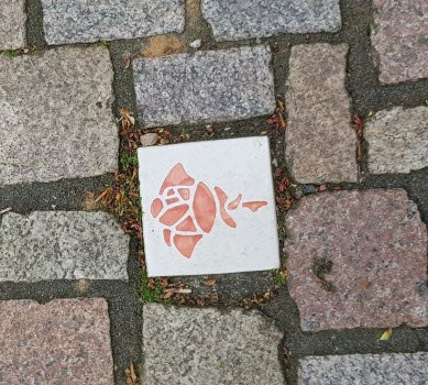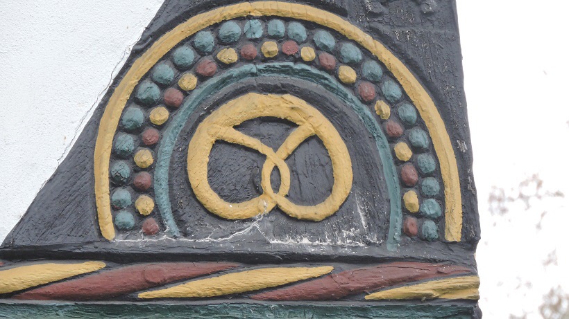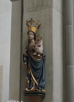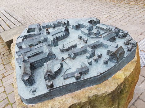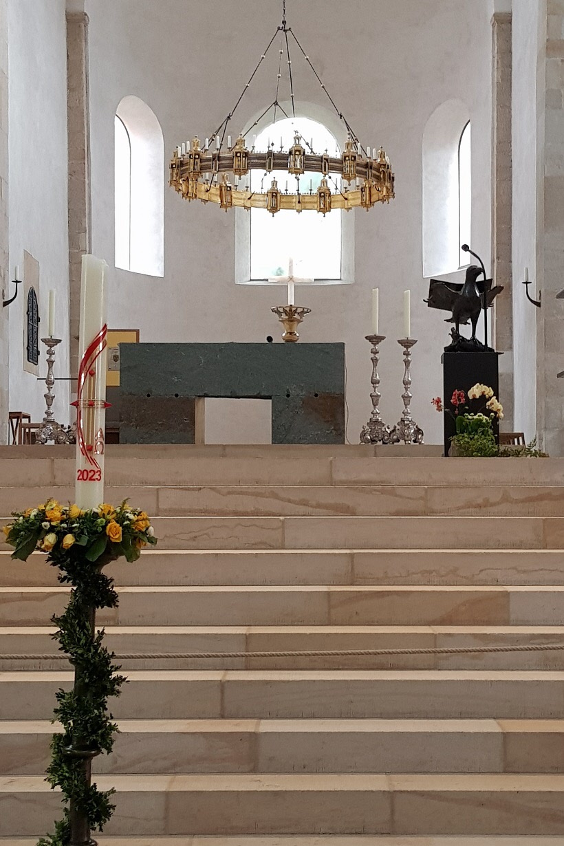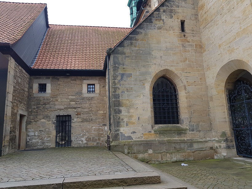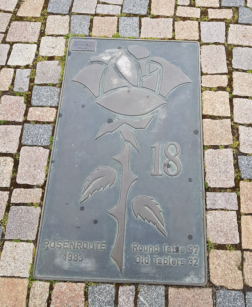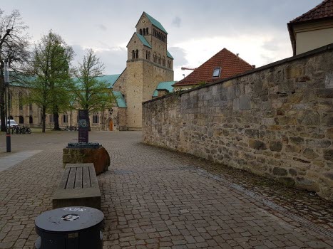 Vi följde den avbildade rosen i gatstenarna och kom till Michaelis-kyrkan i romansk stil.